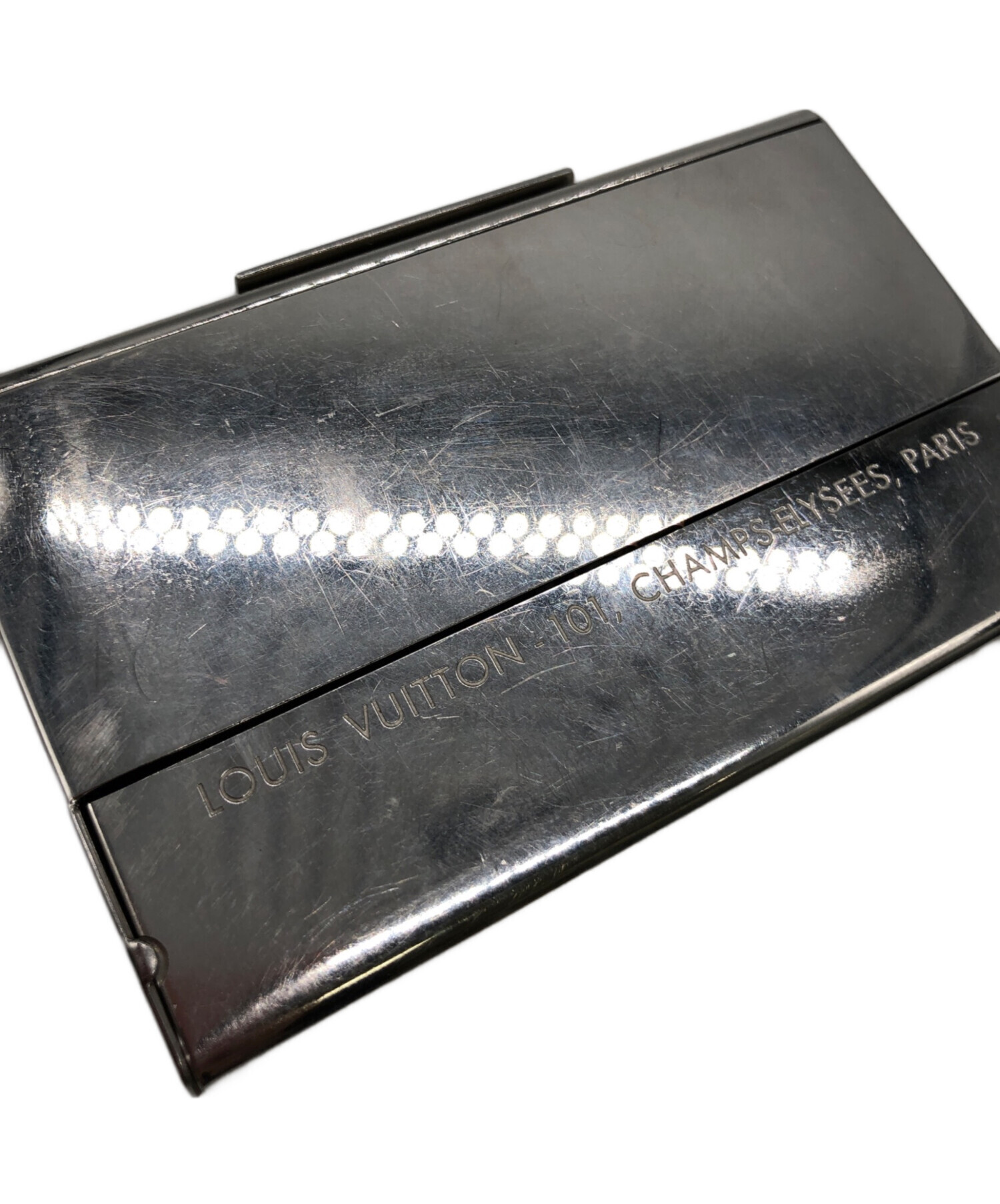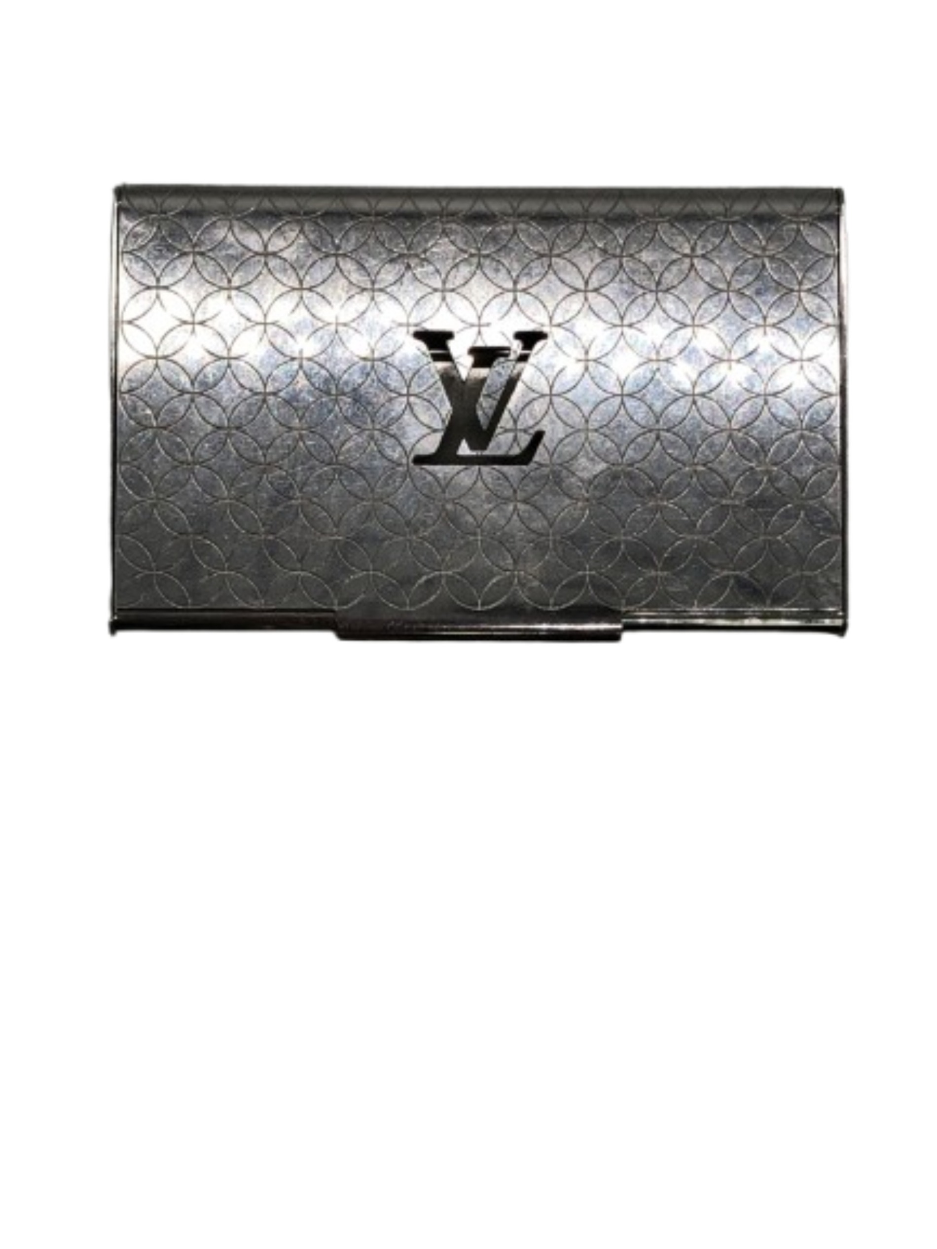| スタッフコメント | パラジウム仕上げのメタルベースに、LVロゴとモノグラム・フラワーのモチーフが飾り穴であしらわれている名刺入れです。メタリックな素材感がビジネスシーンにも馴染むスタイリッシュでモダンな印象を与えます。 |