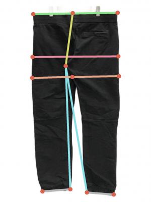 ウエスト周り約97cm ヒップ周り約109.5cm もも周り約64cm 裾周り約34.5cm 股上(後ろ)約33.5cm 股下(後ろ)約73cm