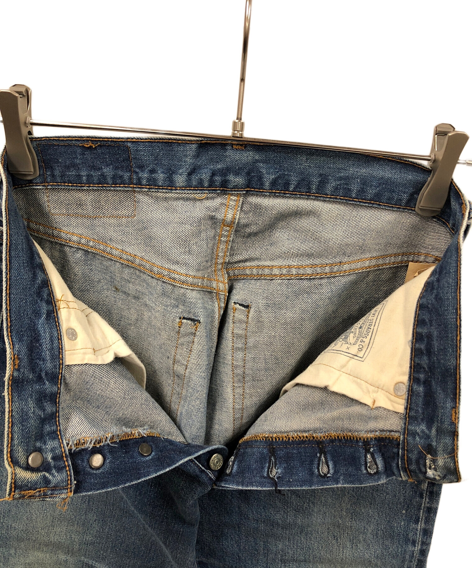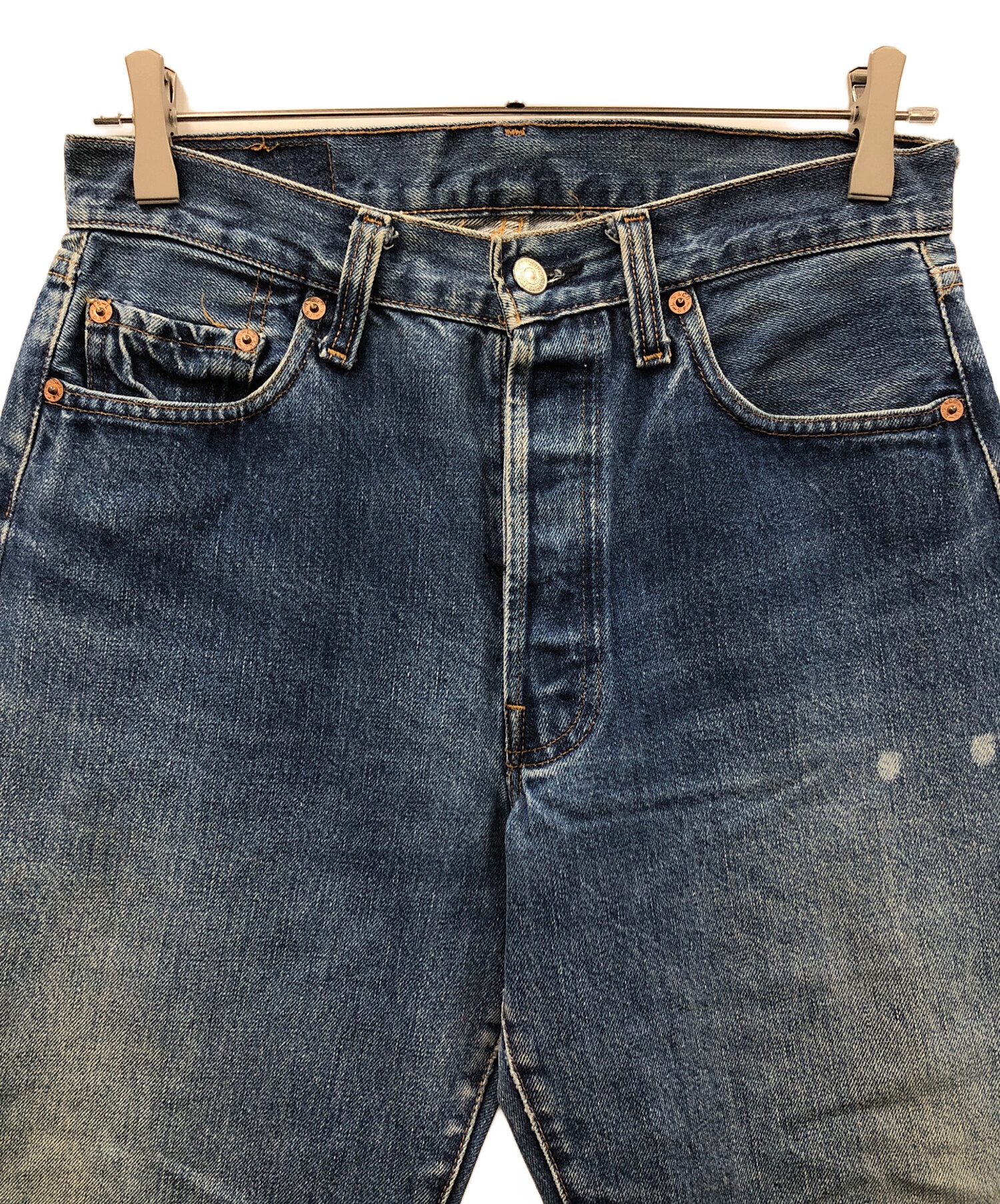 | 状態 | 画像に入りきらなかった部分まで全体的にダメージがあります。中古品であることをご理解の上ご購入ください。その他、店頭にて展示販売を行ってますので、画像や記載にない小ダメージがある場合があります。重ねてご理解の上ご購入ください。 ※色褪せ、ヨゴレ、ホツレ、キズ、ヤブレ、使用感有 ※左腰付近ヨゴレ有 ※右膝付近ヤブレ、ヨゴレ有 ※股スレ有 ※裾ホツレ有 ※フロントボタンホールホツレ有 |