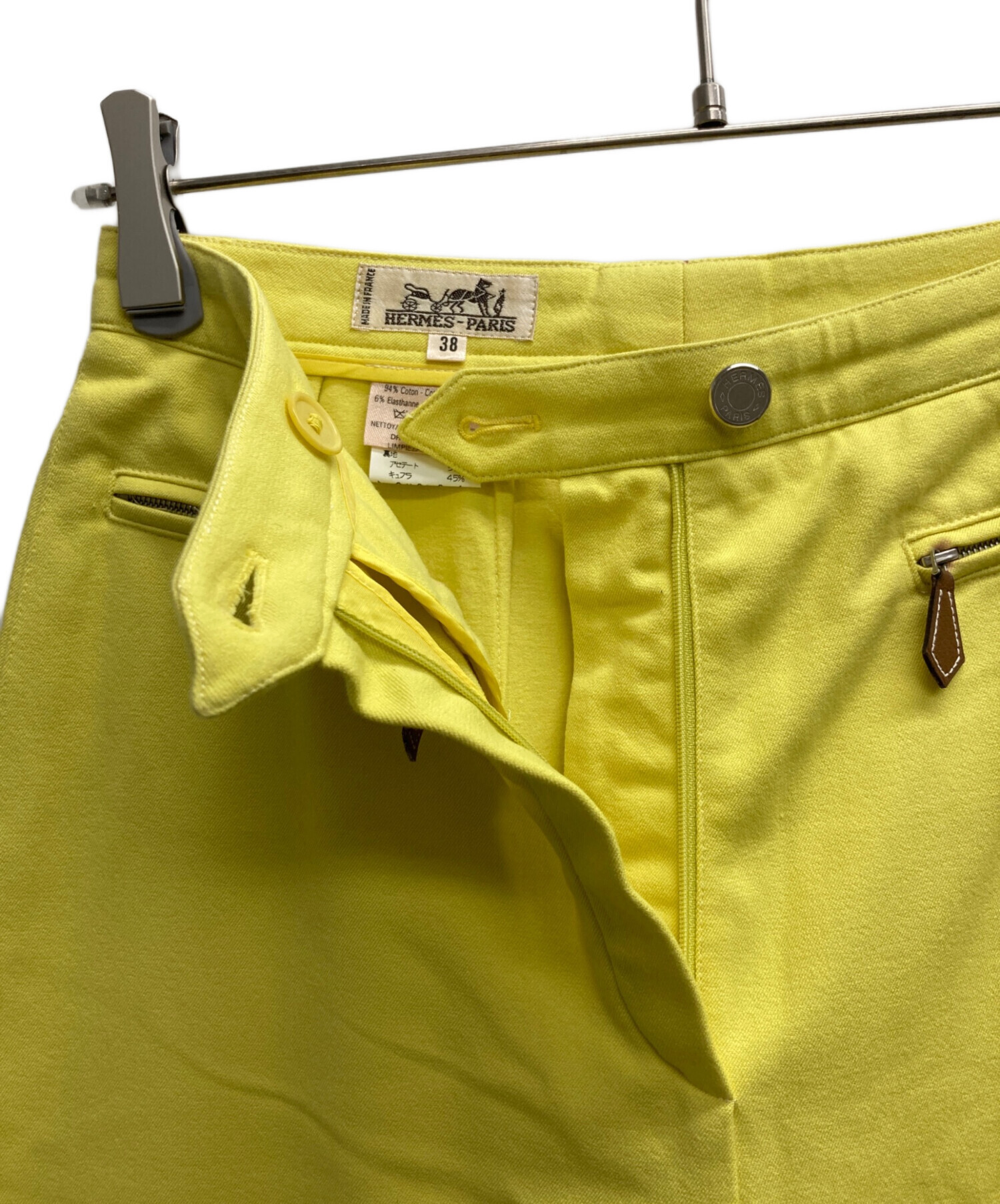 • HERMES(エルメス)HERMES (エルメス) セリエボタンストレッチパンツ イエロー サイズ:38の古着・服飾アイテム ハンガー跡
