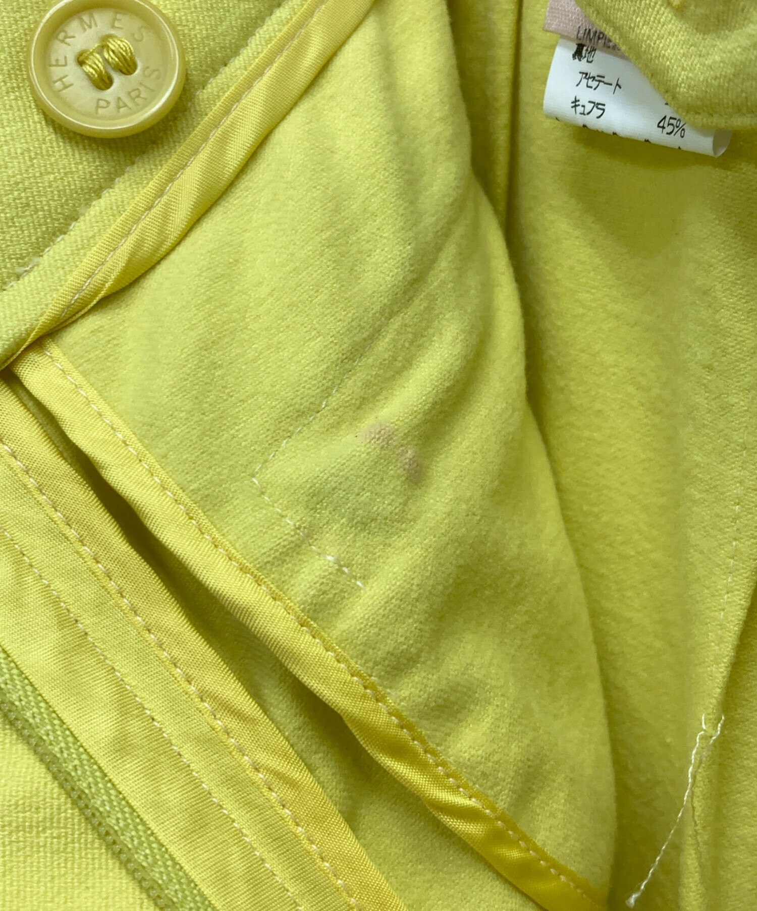 • HERMES(エルメス)HERMES (エルメス) セリエボタンストレッチパンツ イエロー サイズ:38の古着・服飾アイテム 内部ヨゴレ