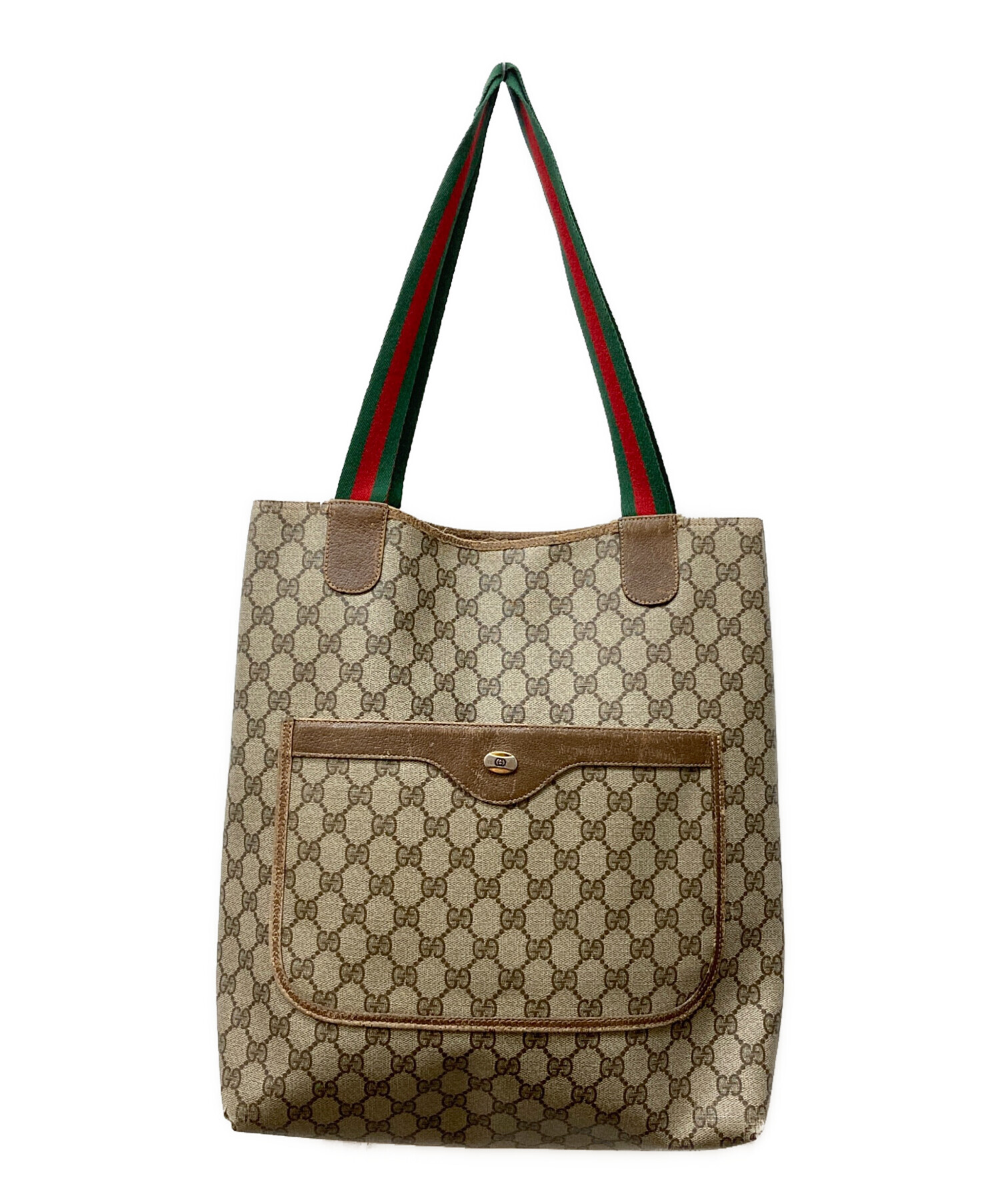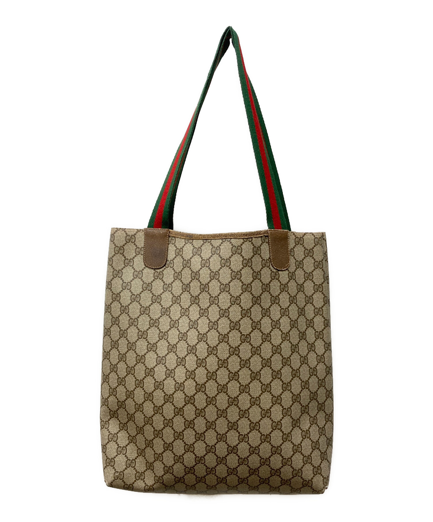 • GUCCI(グッチ)GUCCI (グッチ) GGスプリーム シェリーラインハンドルトートバッグ ブラウンの古着・服飾アイテム ハンドル ダメージ有