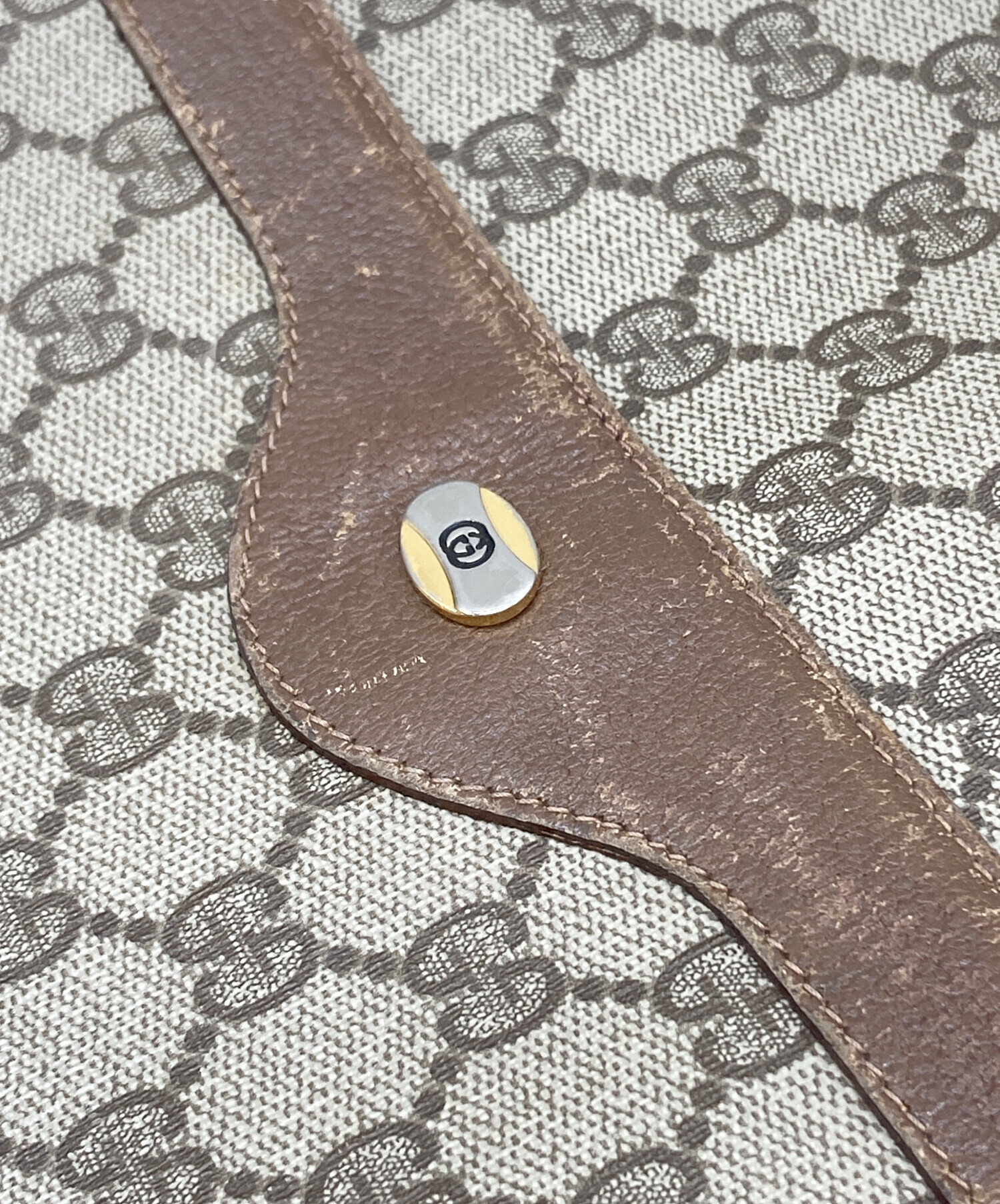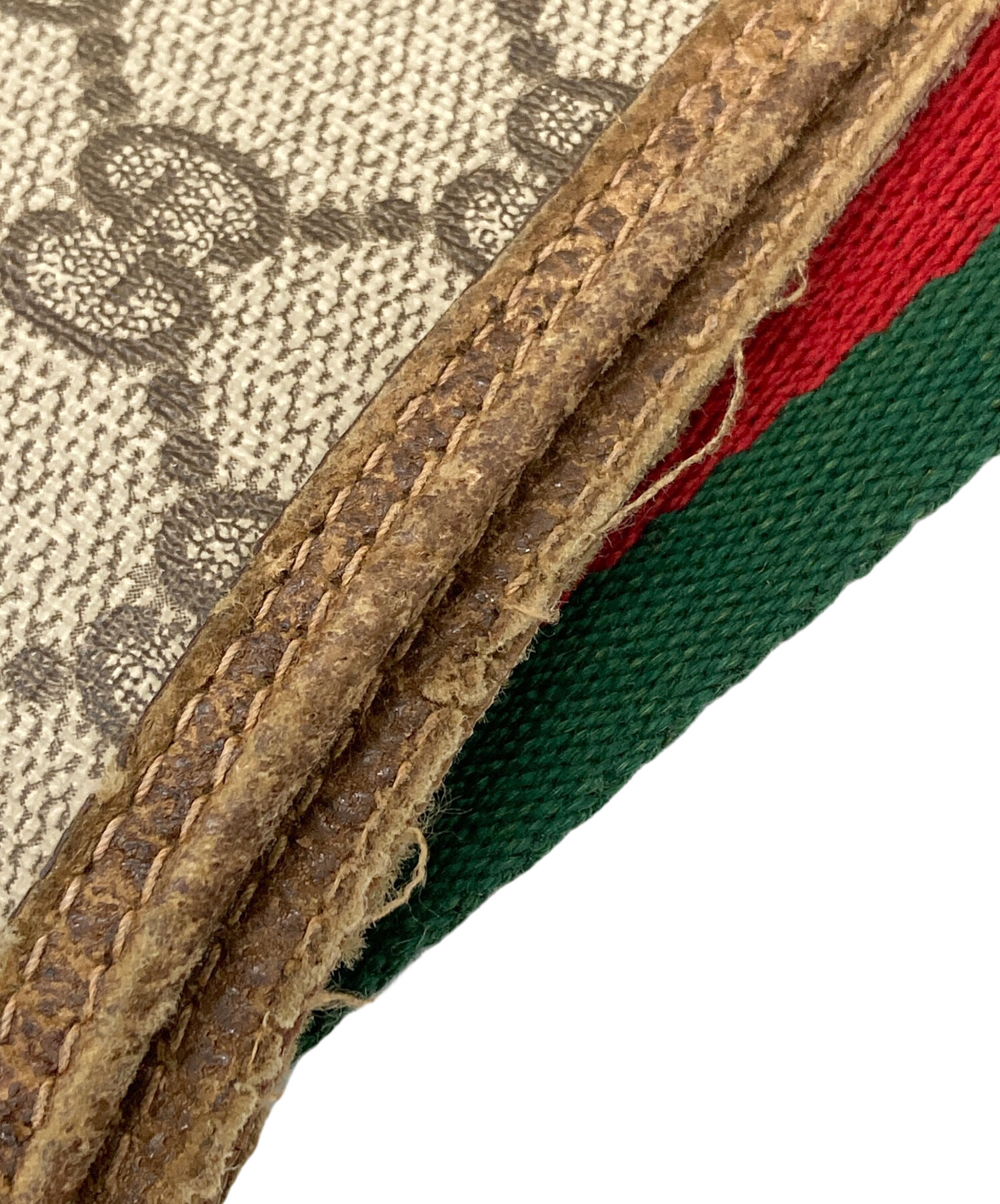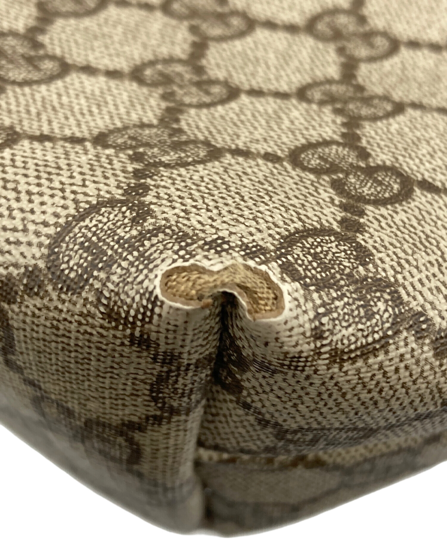 • GUCCI(グッチ)GUCCI (グッチ) GGスプリーム シェリーラインハンドルトートバッグ ブラウンの古着・服飾アイテム コバ ダメージ有