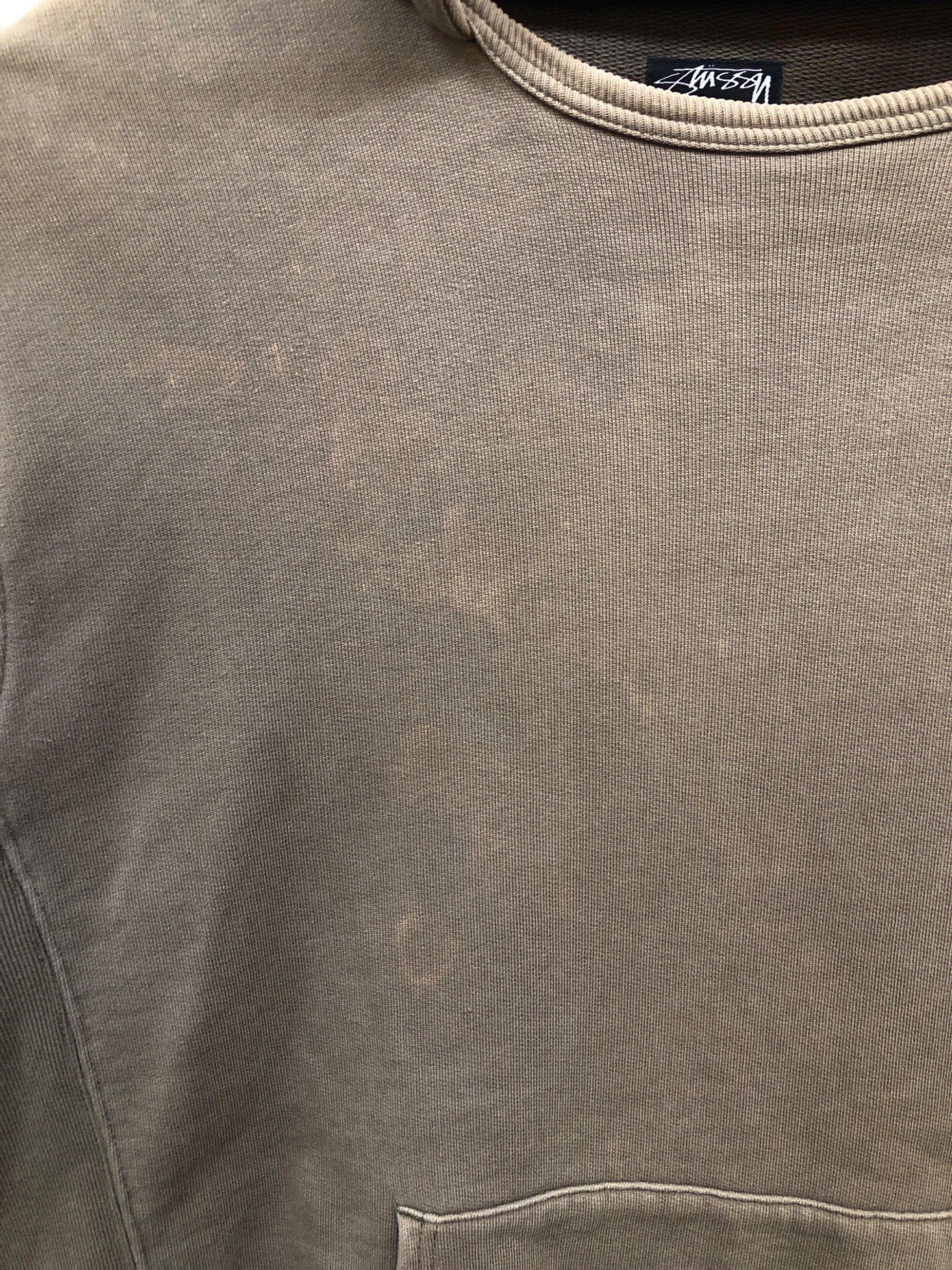 • stussy(ステューシー)stussy (ステューシー) パーカー カーキ サイズ:XLの古着・服飾アイテム 背面毛羽立ち有