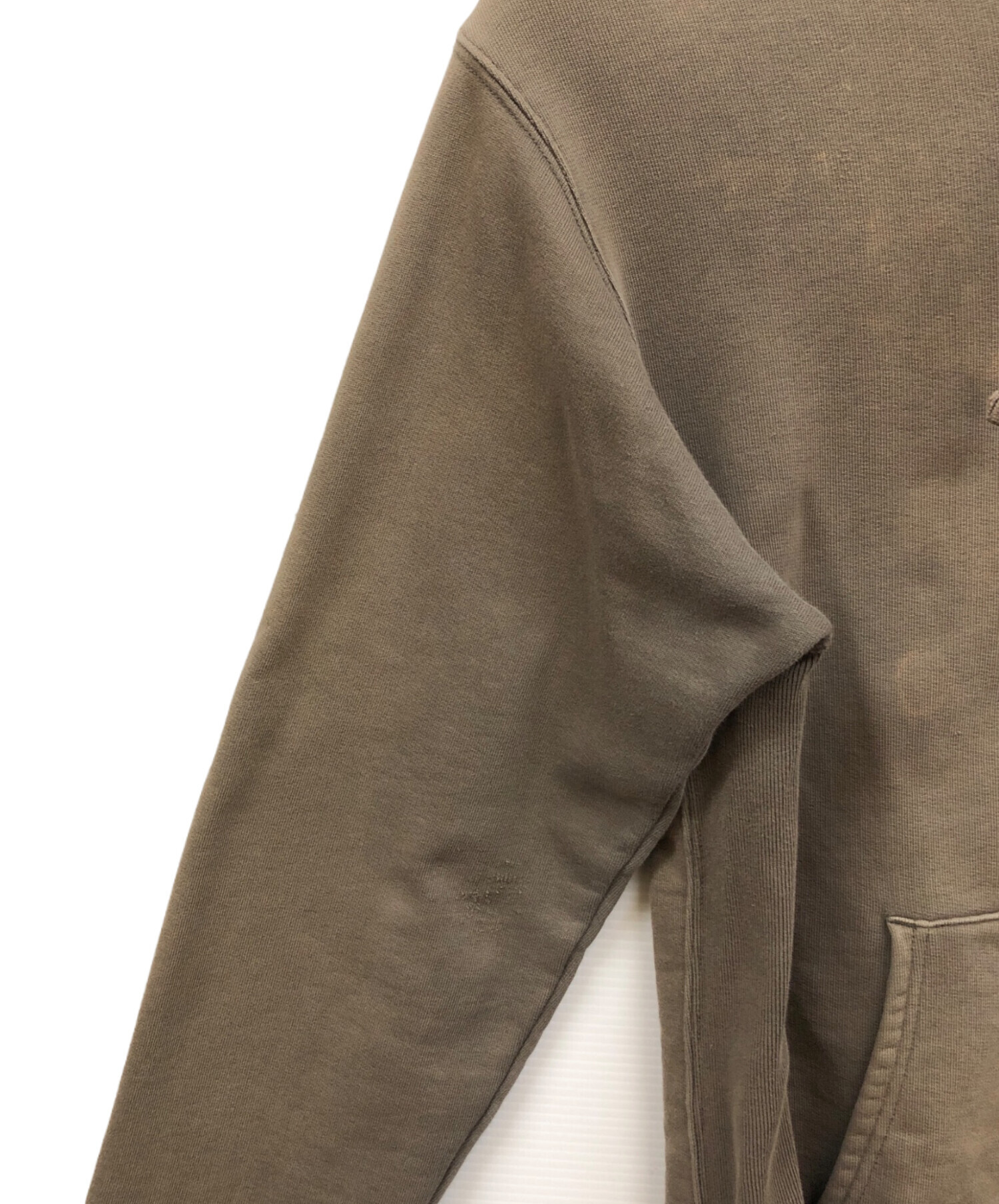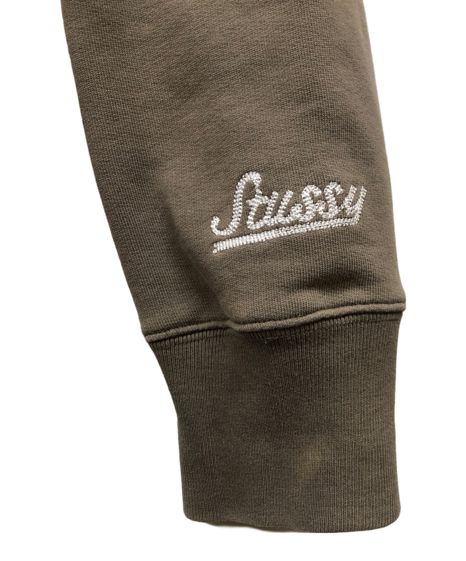 • stussy(ステューシー)stussy (ステューシー) パーカー カーキ サイズ:XLの古着・服飾アイテム 袖毛羽立ち有