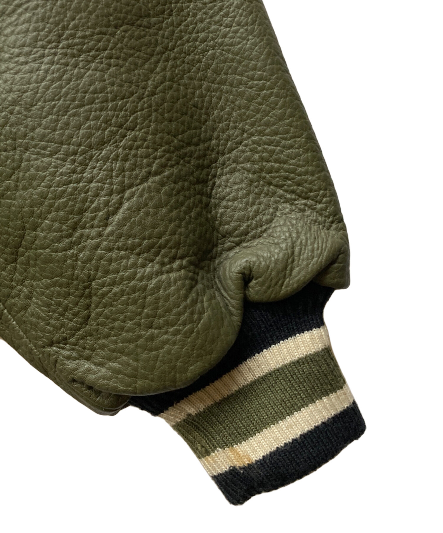 | 素材 | 表地: 毛 80% ナイロン 20% 裏地: アセテート 50% ナイロン 60% 中綿: ポリエステル 100% 袖: 牛革 リブ: アクリル 70% 毛 30% |