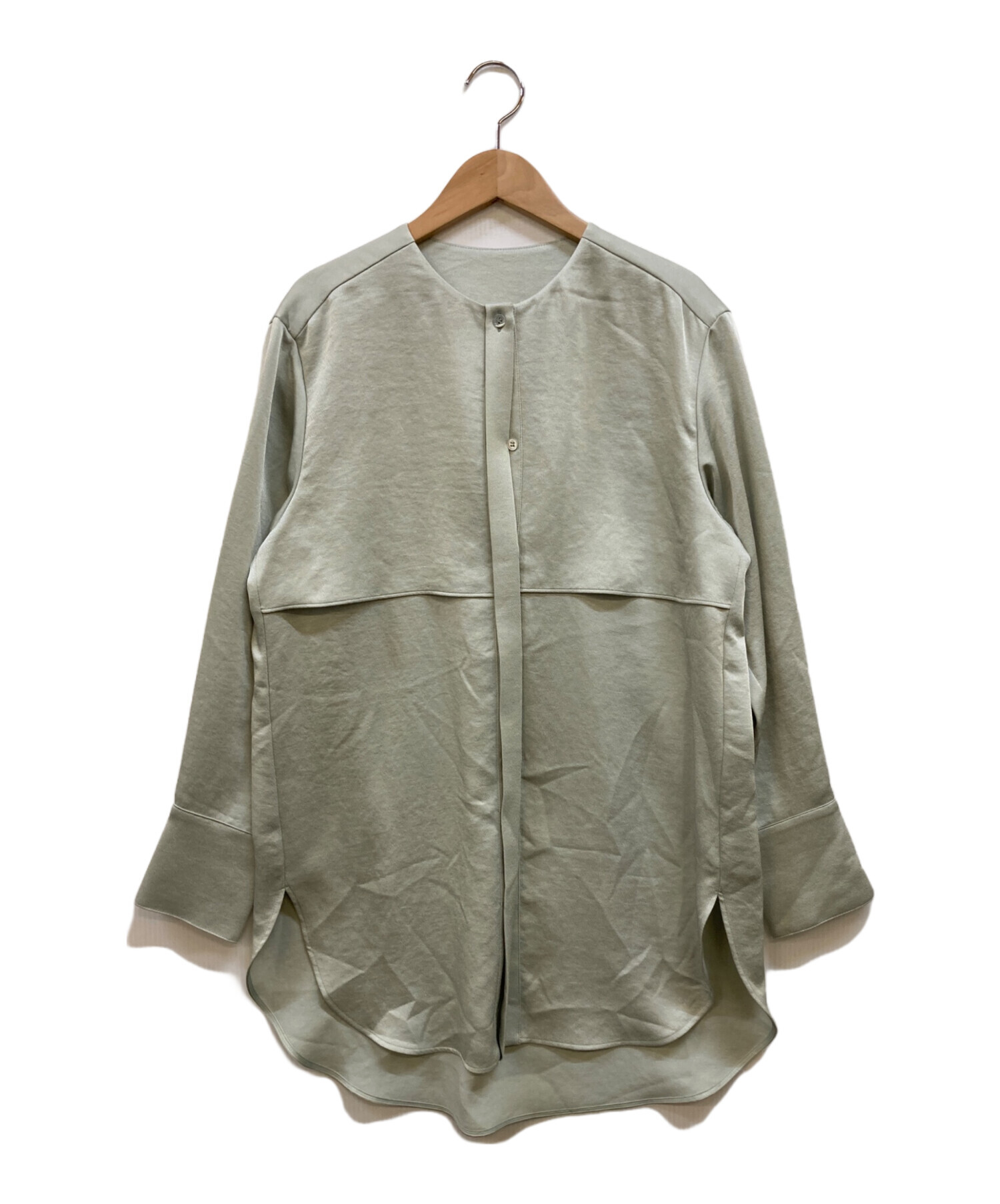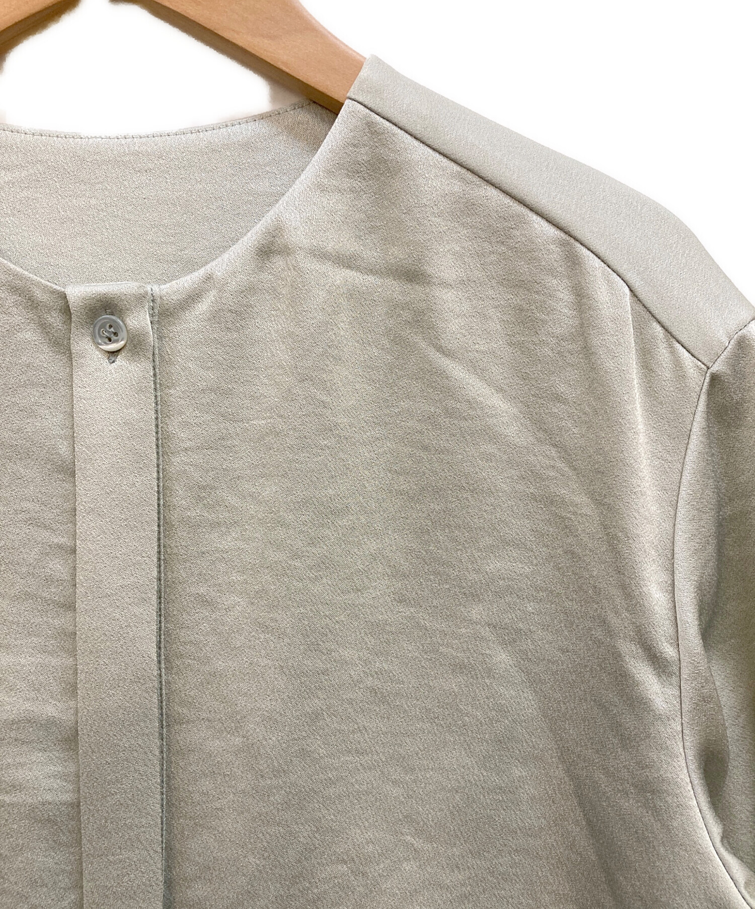 サテンクレープ ノーカラーブラウス