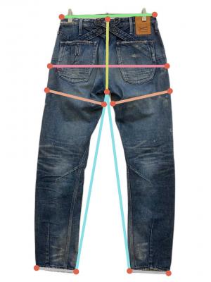 当サイトでは商品の表記サイズの他に、出品商品を採寸しサイズを記載しております。また、実際のアイテム画像を使用した計測とイラストを使用した計測の2パターンがございます。