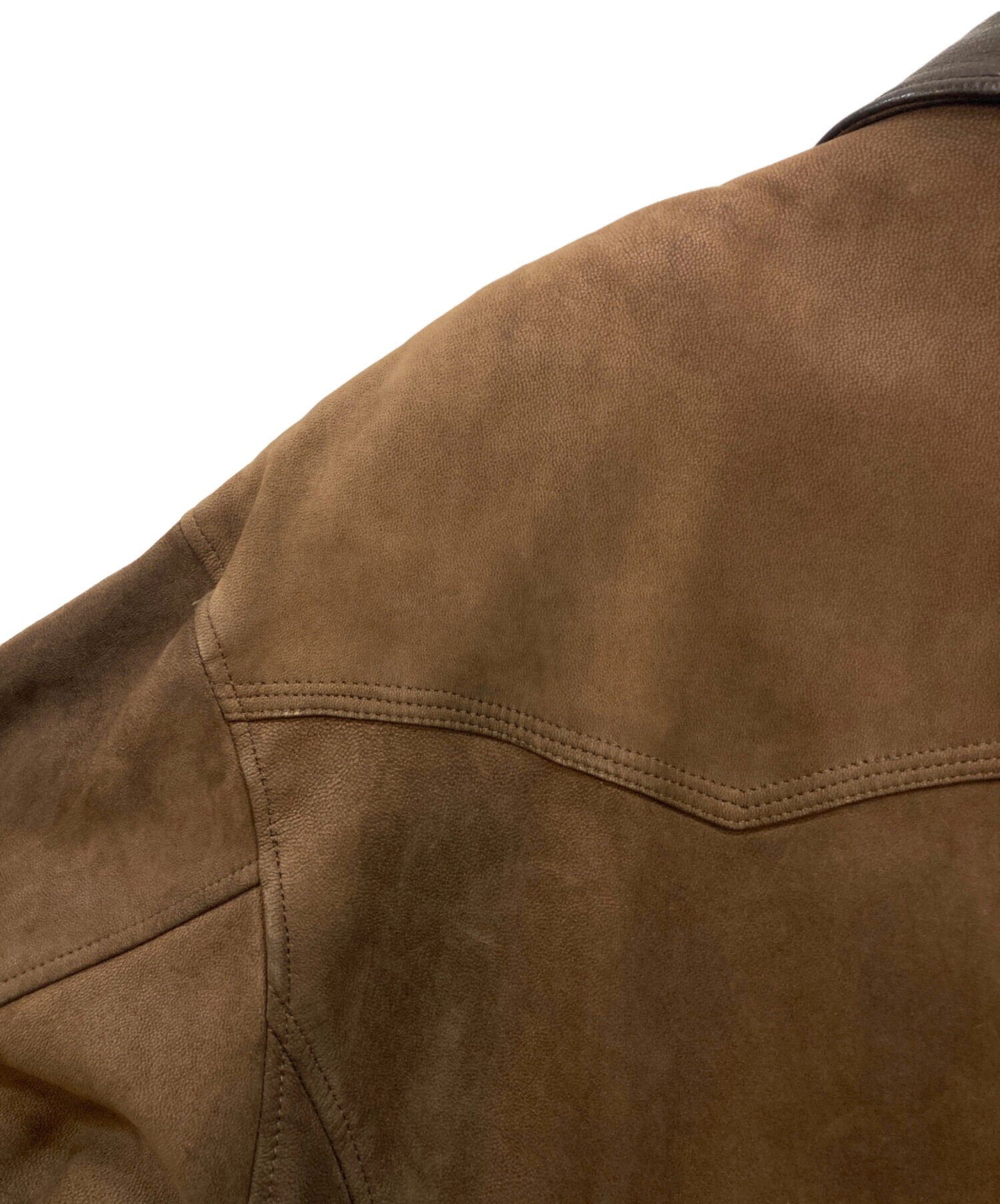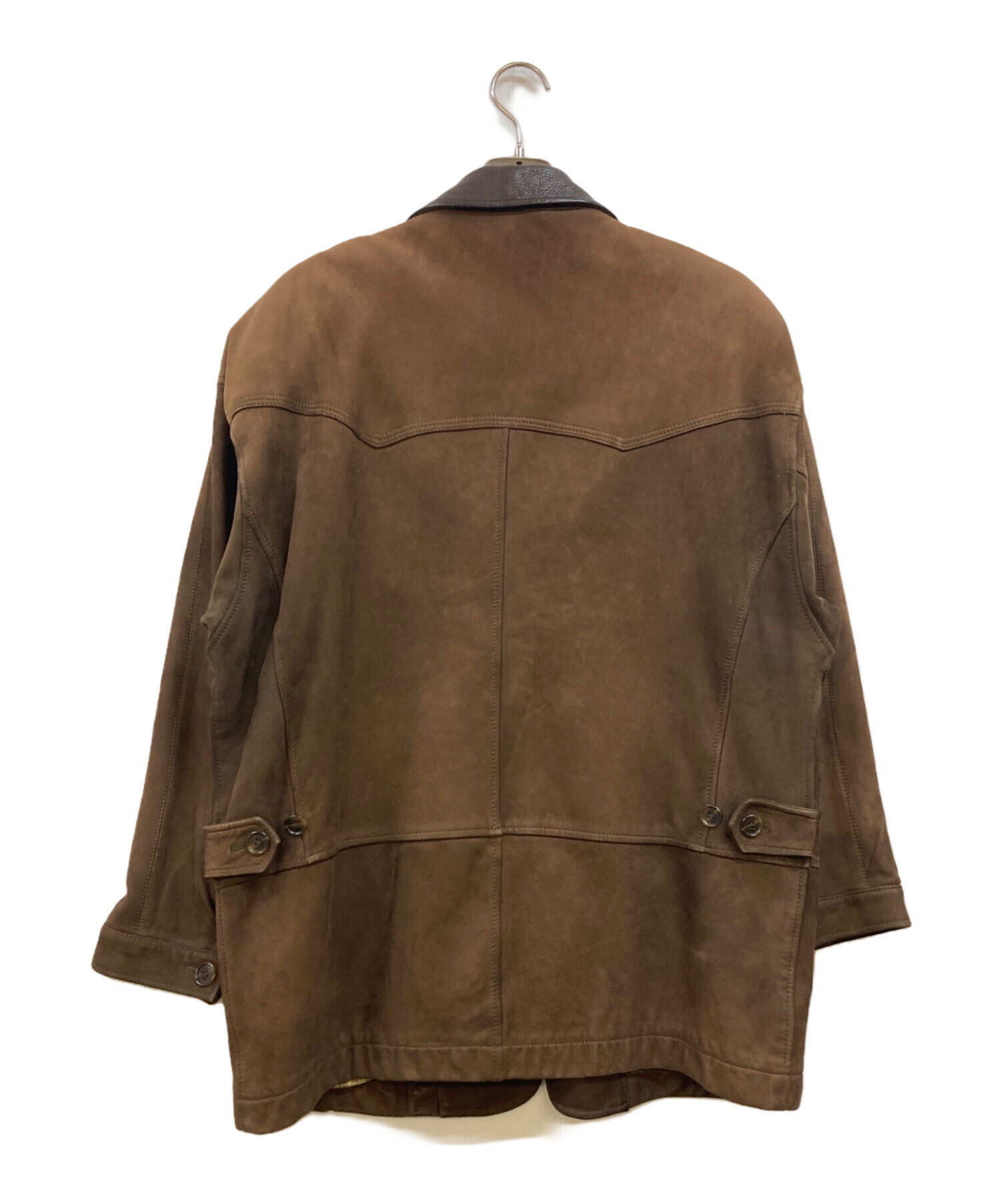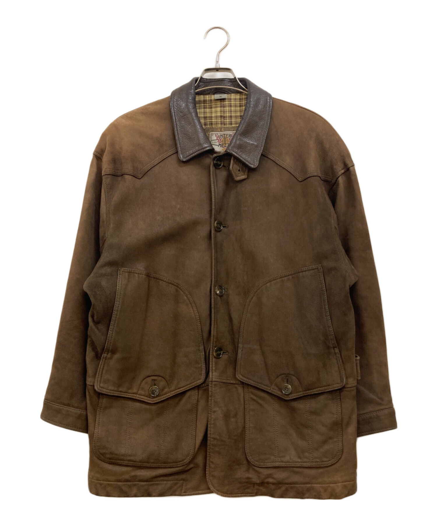 • INTERMEZZO(インターメッツォ)INTERMEZZO (インターメッツォ) 襟レザーヌバックコート ブラウン サイズ:Mの古着・服飾アイテム ヤケ