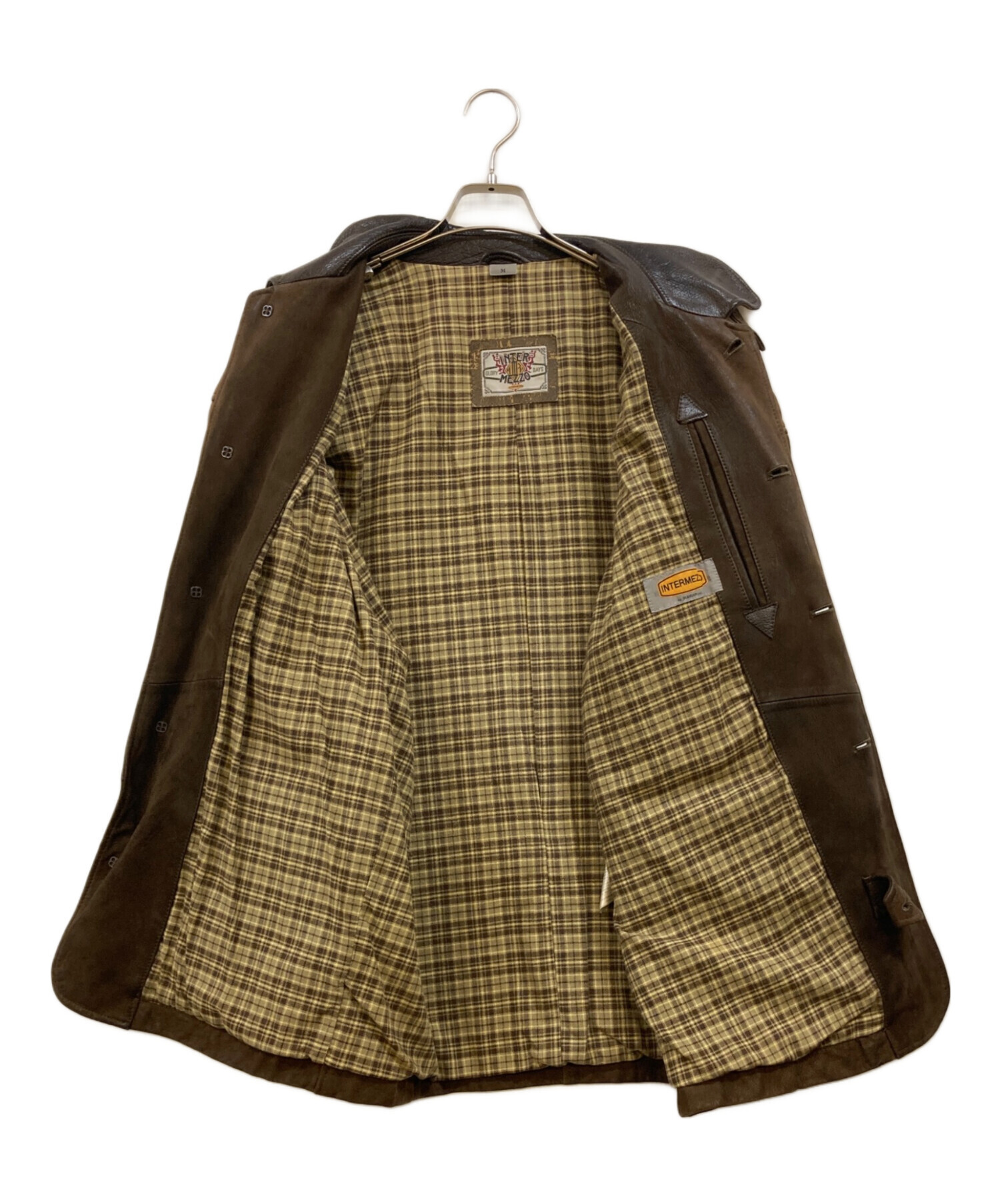 • INTERMEZZO(インターメッツォ)INTERMEZZO (インターメッツォ) 襟レザーヌバックコート ブラウン サイズ:Mの古着・服飾アイテム