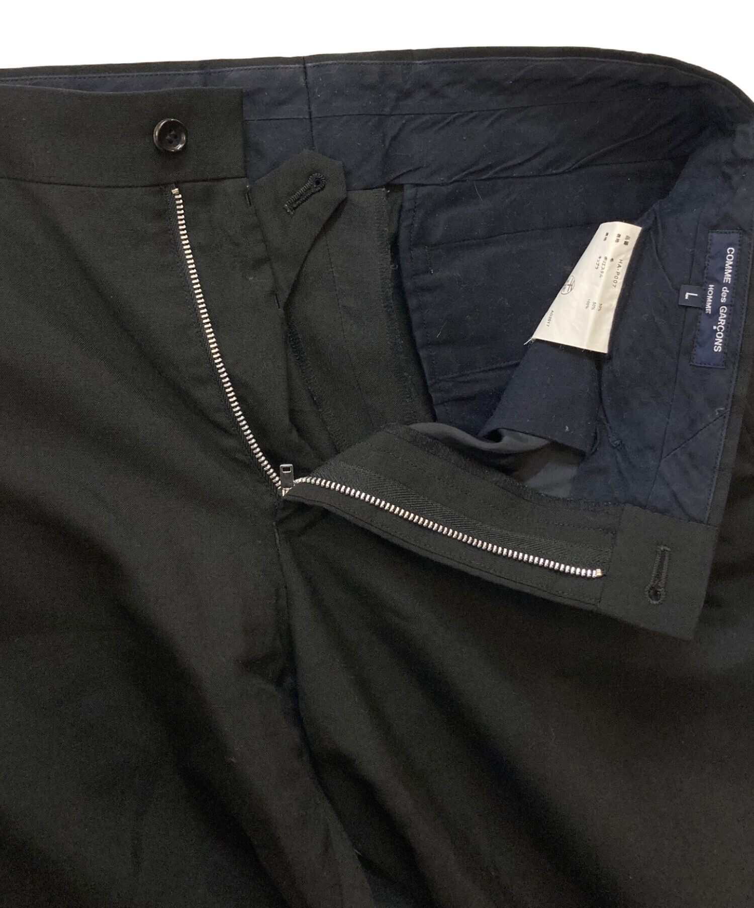 • COMME des GARCONS HOMME(コムデギャルソン オム)COMME des GARCONS HOMME (コムデギャルソン オム) ウールポリエステルホップサックトラウザーズ ブラック サイズ:Lの古着・服飾アイテム アタリ・毛羽立ち