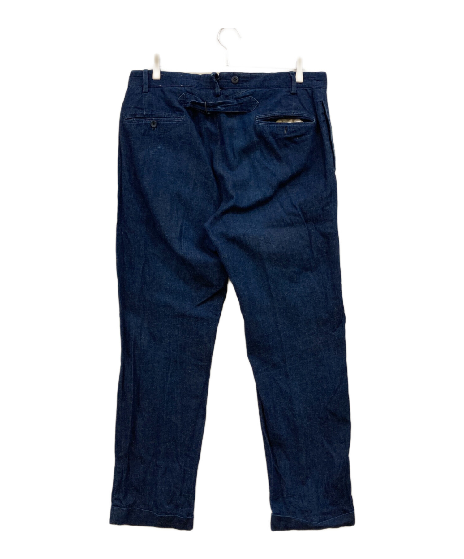 • RRL(ダブルアールエル)RRL (ダブルアールエル) シンチバック シャンブレーデニムパンツ インディゴ サイズ:W34の古着・服飾アイテム 裾縫い糸有