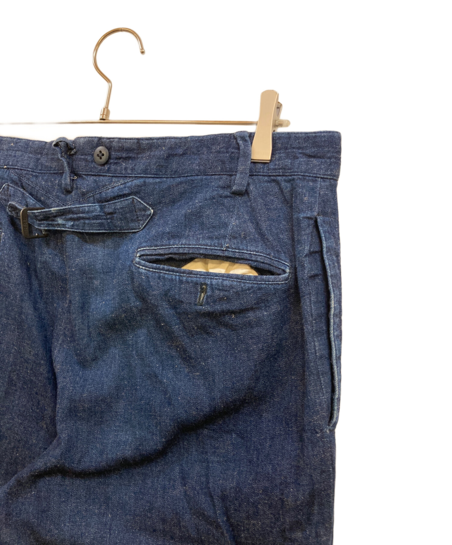 • RRL(ダブルアールエル)RRL (ダブルアールエル) シンチバック シャンブレーデニムパンツ インディゴ サイズ:W34の古着・服飾アイテム アタリ・ヨゴレ