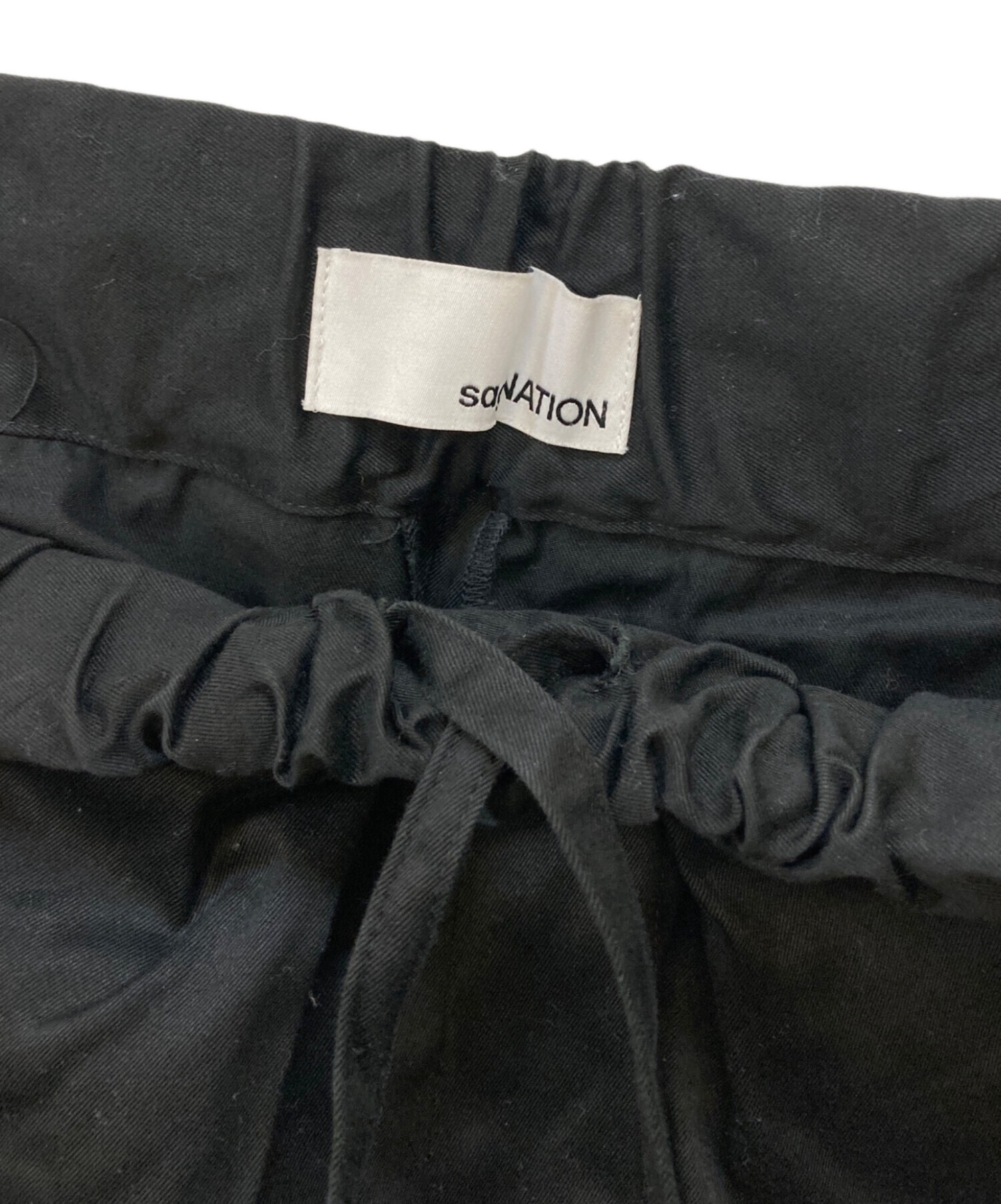 • SAGE NATION(セイジ ネーション)SAGE NATION (セイジ ネーション) BOXPLEAT TROUSER PANTS ブラック サイズ:Lの古着・服飾アイテム 裾裏薄アタリ・ヨゴレ