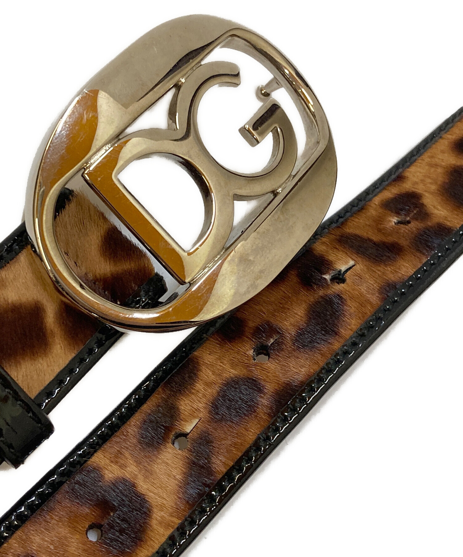 • DOLCE & GABBANA(ドルチェ&ガッバーナ)DOLCE & GABBANA (ドルチェ&ガッバーナ) ロゴバックル ハラコレザーベルト ブラウン サイズ:90㎝-36inchの古着・服飾アイテム 金具キズ・ヨゴレ、穴使用感