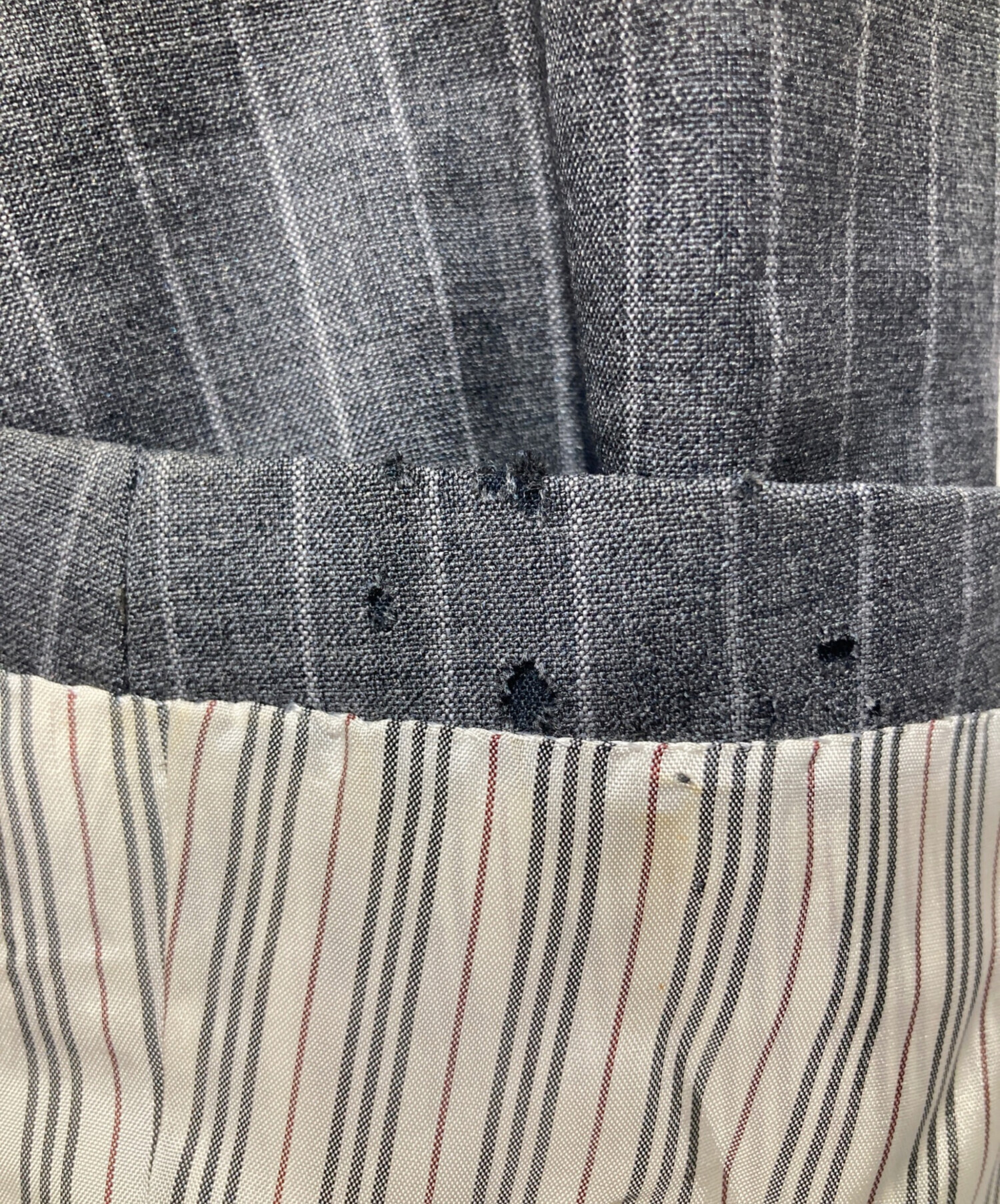 目立つシミや汚れ、におい等がある場合は商品画像や説明文にて極力表記させていただいておりますが、中古品という商品の特性上、全ての瑕疵や不備、洋服直し箇所を撮影・記載をすることは難しくなっております。また、ほとんどのアイテムは店頭と併売しておりますため、出品掲載時からコンディションが変動している場合もございます。あらかじめご了承くださいませ。