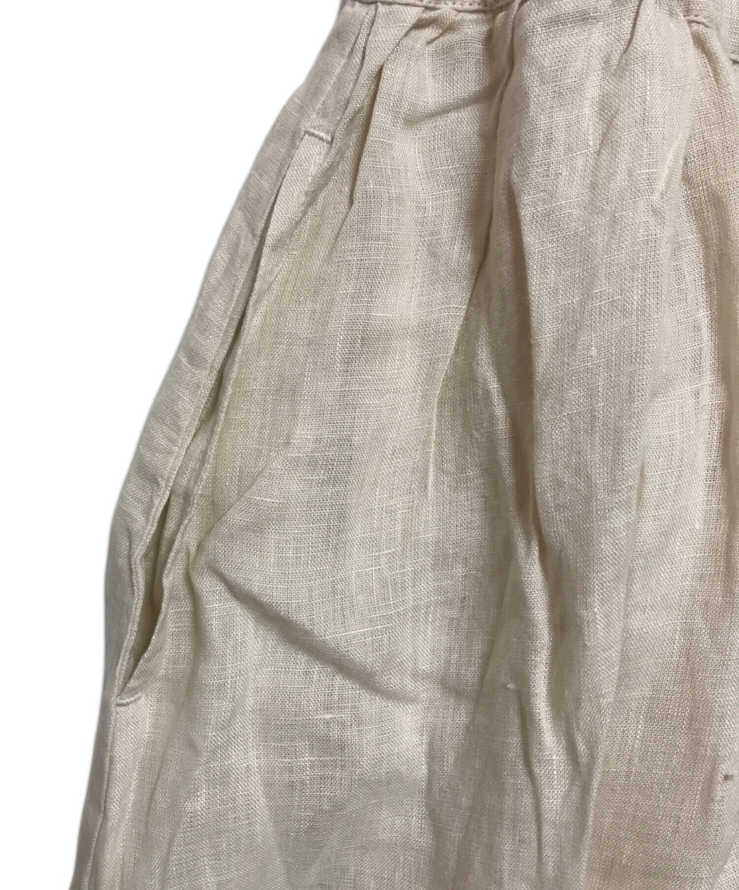 | 素材 | 本体: 麻 100% 別布部分: 綿 100% 刺繍部分: ポリエステル 100% レース部分: 綿 100% 裏地: 綿 100% |