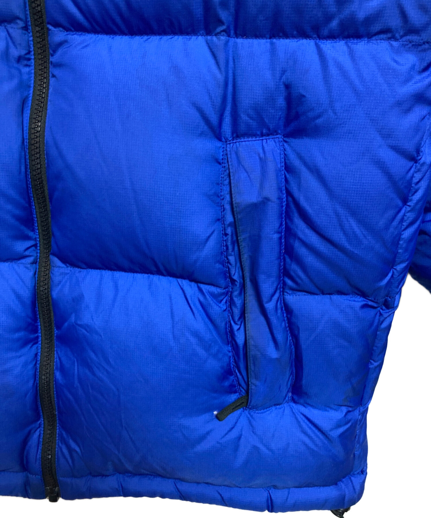 • THE NORTH FACE(ザ ノース フェイス)THE NORTH FACE (ザ ノース フェイス) ヌプシダウンジャケット ブラック×ブルー サイズ:Mの古着・服飾アイテム 襟汚れがございます。