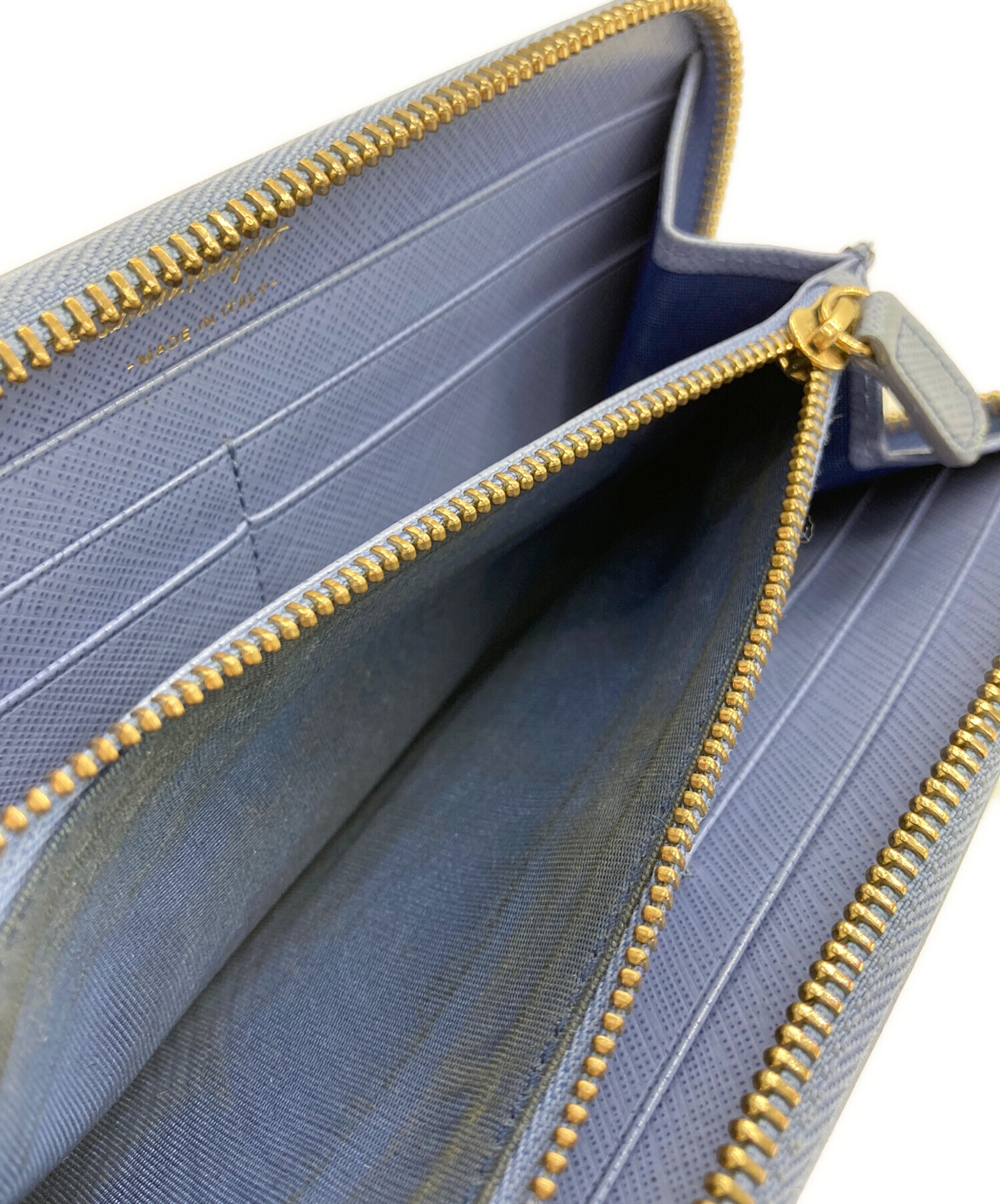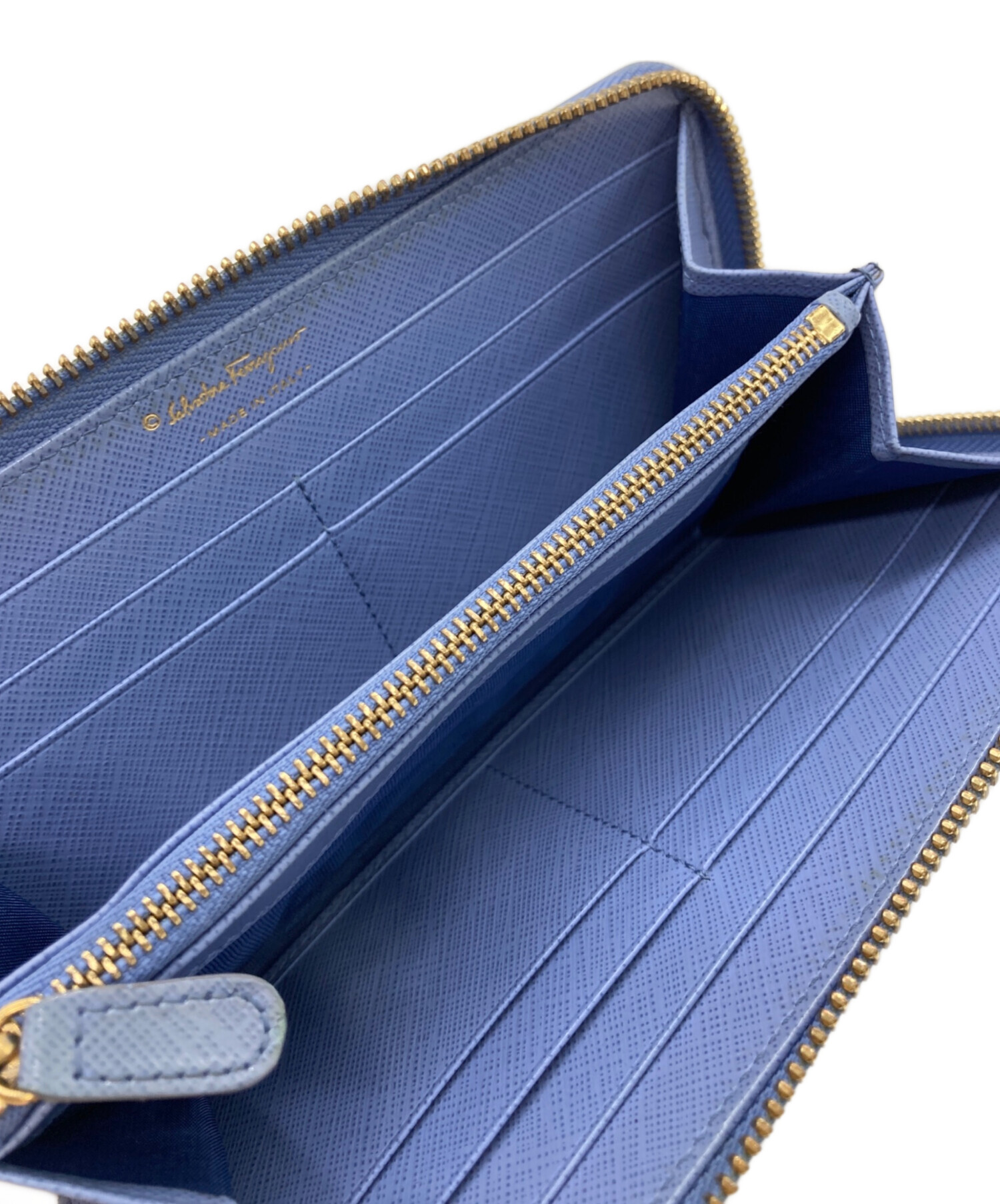• Salvatore Ferragamo(サルヴァトーレ フェラガモ)Salvatore Ferragamo (サルヴァトーレ フェラガモ) ガンチーニ ラウンドジップウォレット ブルーの古着・服飾アイテム 汚れがございます。