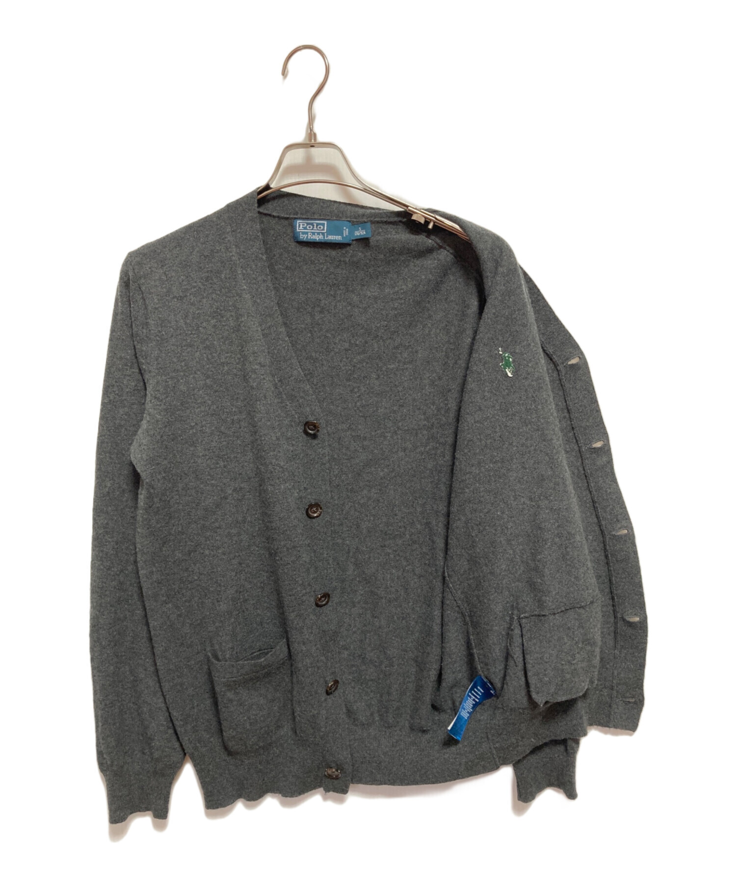 • POLO RALPH LAUREN(ポロ・ラルフローレン)POLO RALPH LAUREN (ポロ・ラルフローレン) メリノウールエルボーパッチカーディガン グレー サイズ:Sの古着・服飾アイテム 毛羽立ちがございます。
