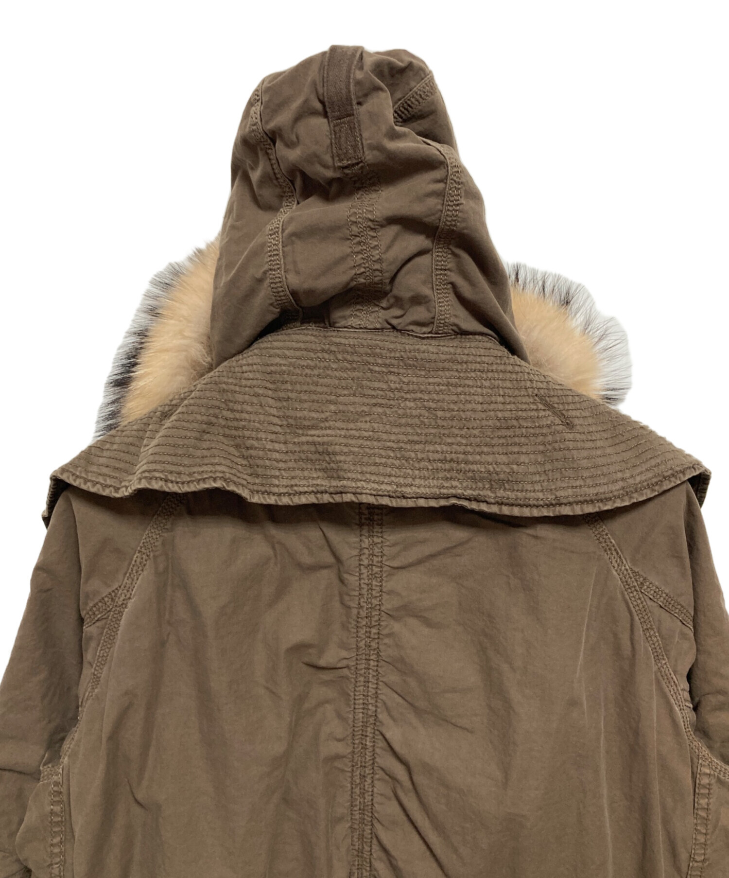 | 素材 | 本体/表地: 綿 100% 別布: 麻 50% 綿 50% ライナー/表地: 麻 50% 綿 50% 裏地: ポリエステル 100% 毛皮: フィンラクーン |