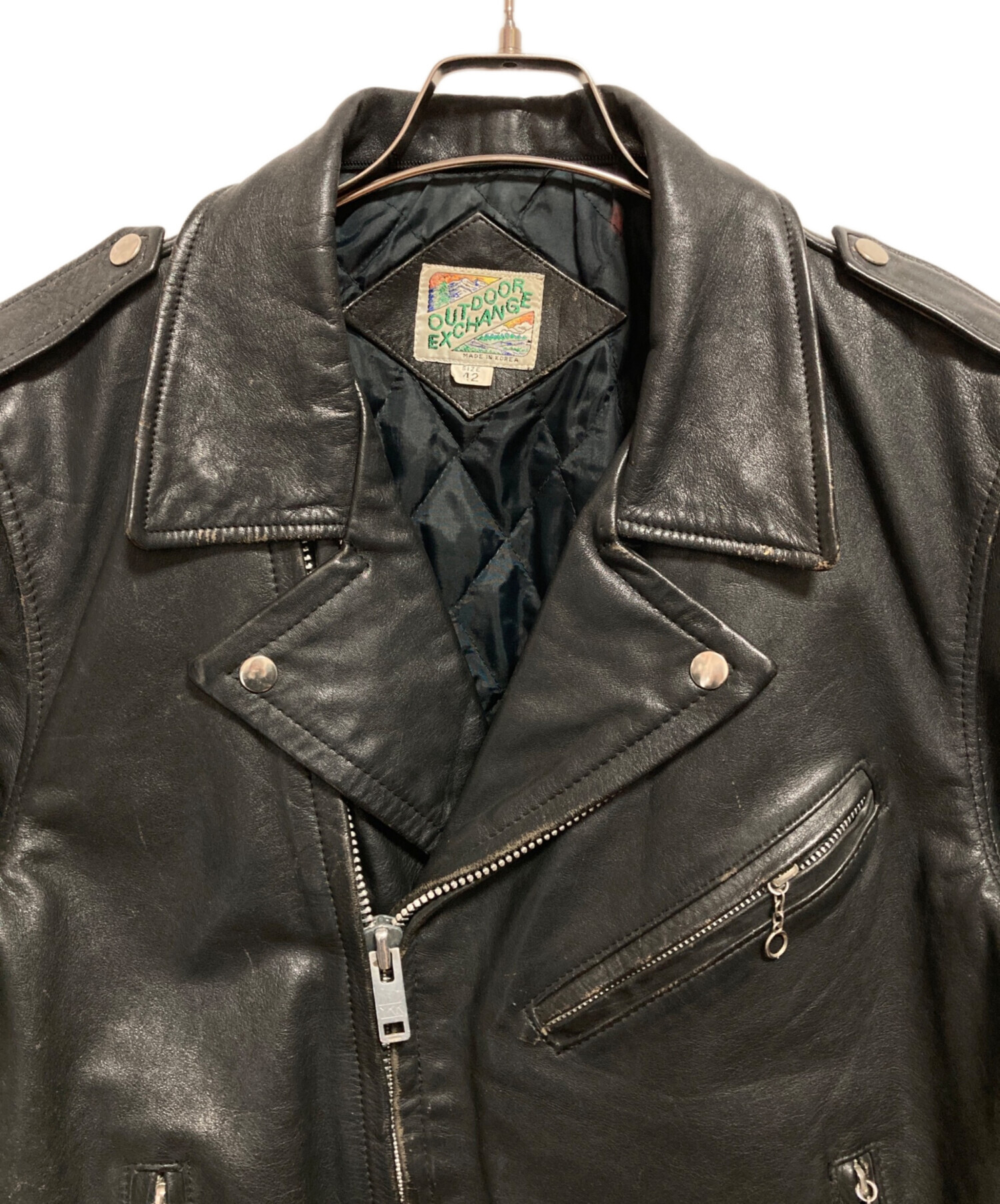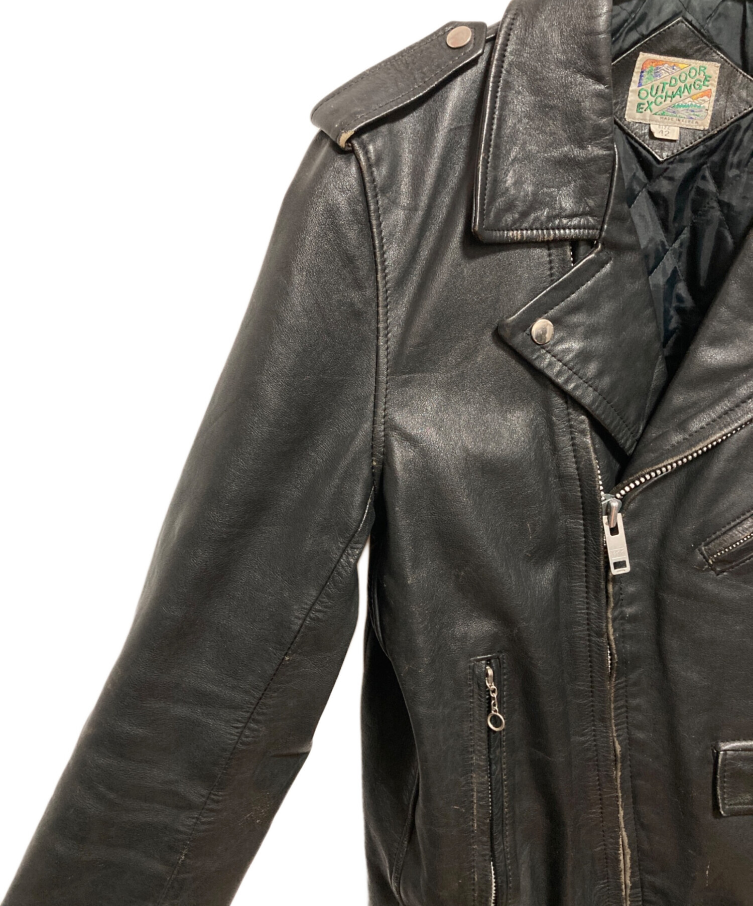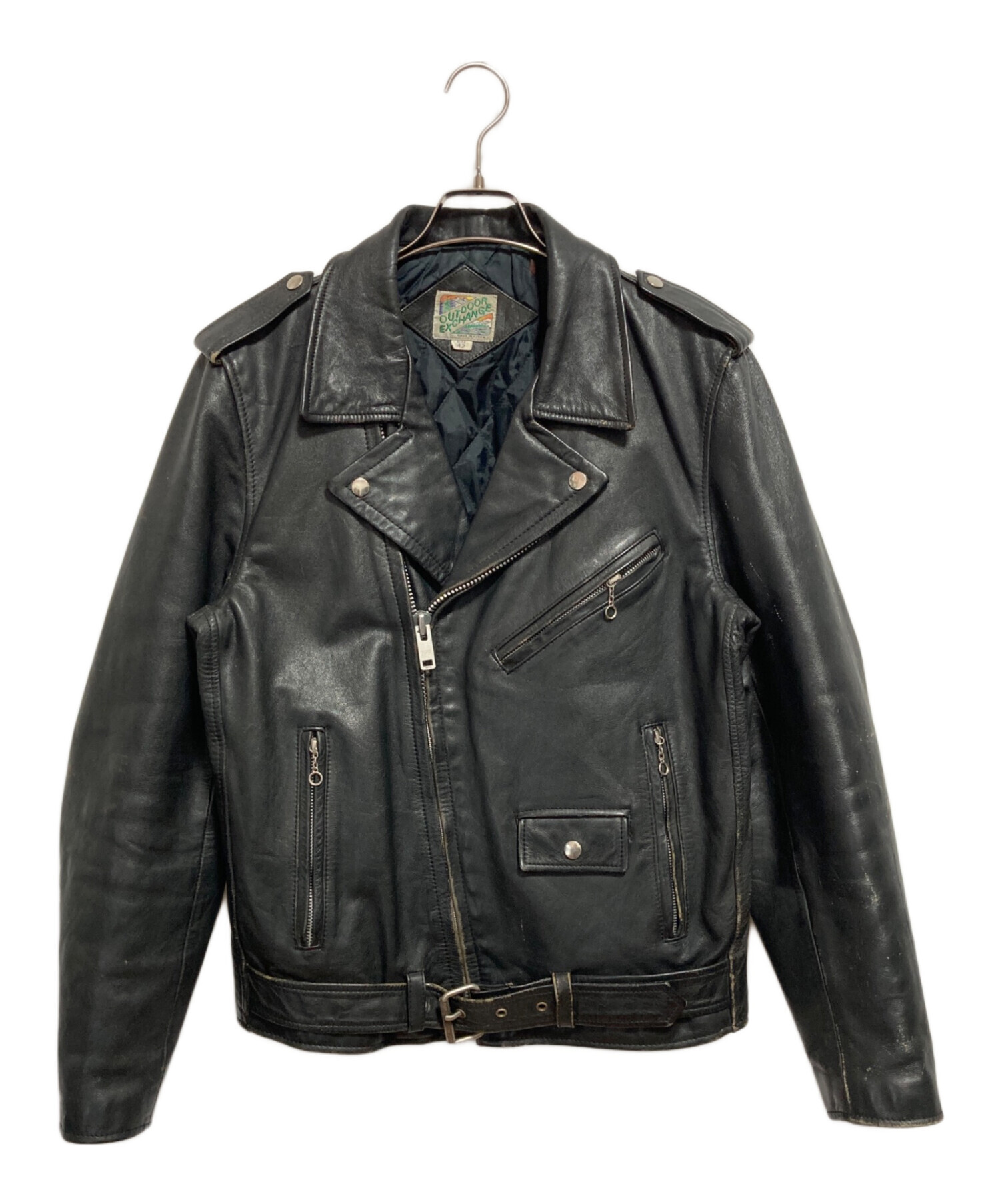 • OUTDOOR EXCHANGE(アウトドアエックスチェンジ)OUTDOOR EXCHANGE (アウトドアエックスチェンジ) ダブルライダースジャケット ブラック サイズ:42の古着・服飾アイテム スレ、コバ割れがございます。