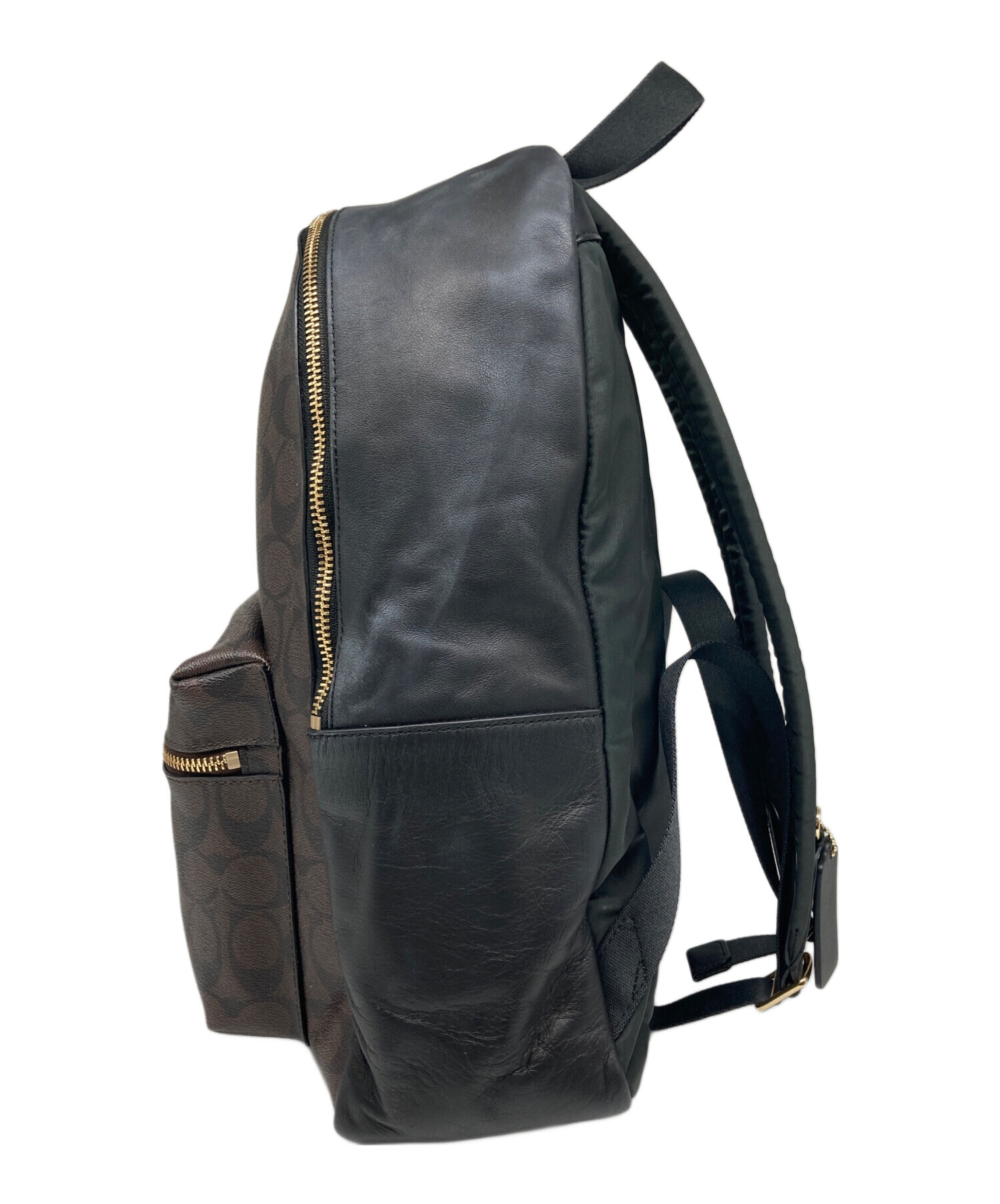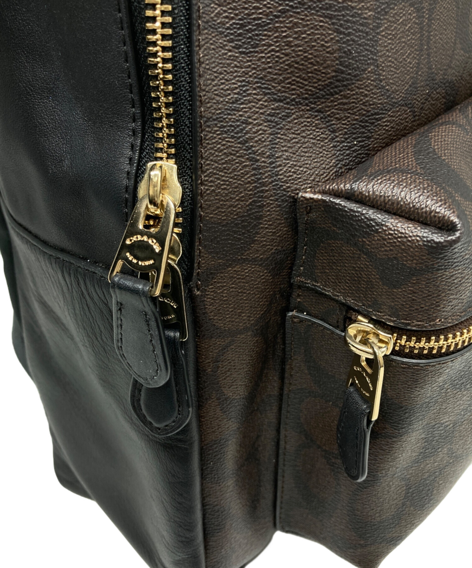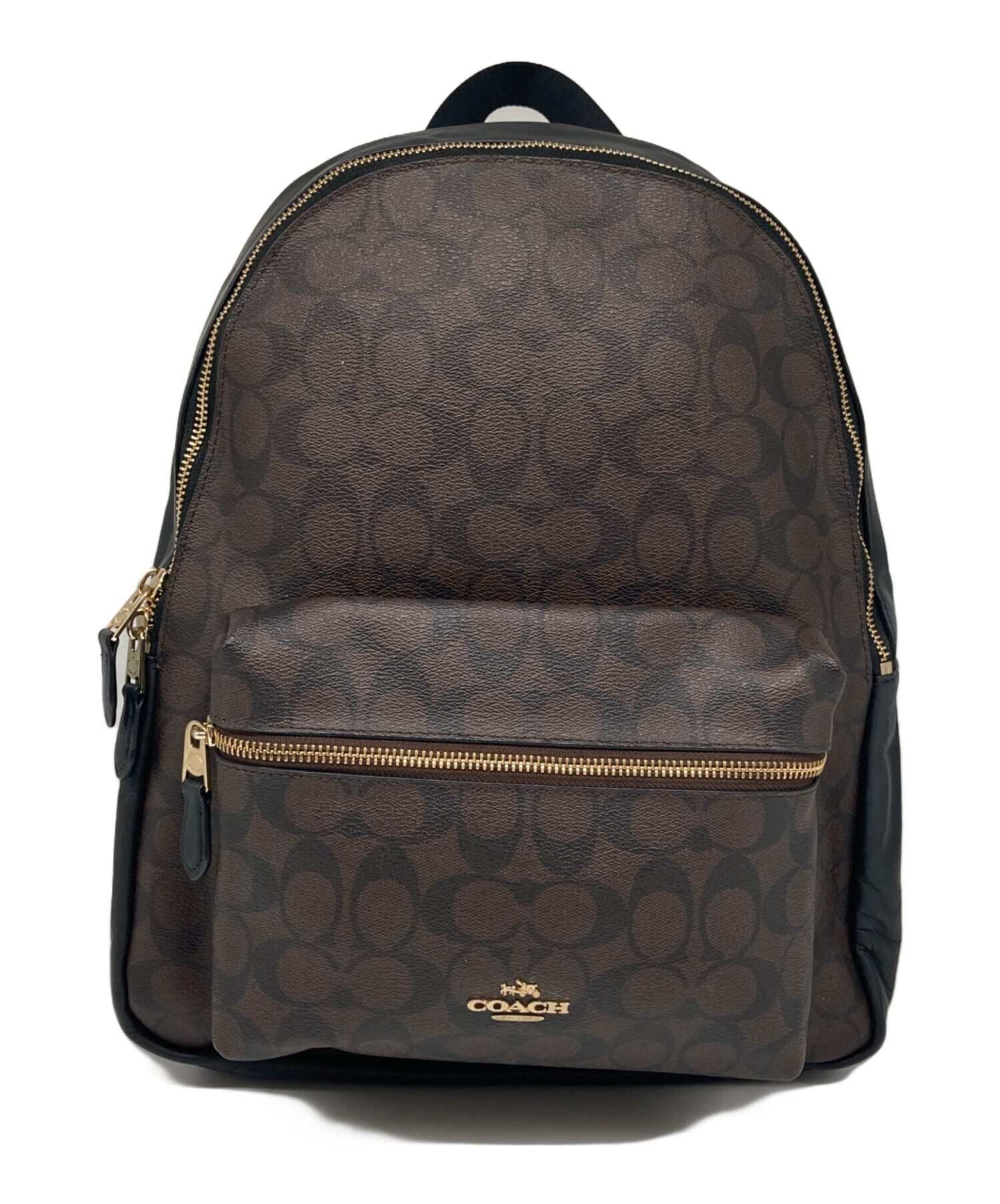 • COACH(コーチ)COACH (コーチ) チャーリーリュック ブラウン×ブラックの古着・服飾アイテム シワがございます。