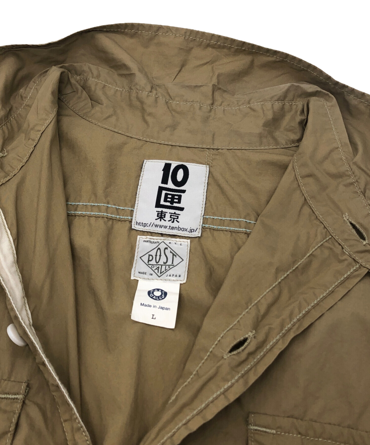 • POST O'ALLS(ポストオーバーオールズ)POST O'ALLS (ポストオーバーオールズ) TENBOX (テンボックス) TRAVELER SHIRT ベージュ サイズ:Lの古着・服飾アイテム 襟元汚れ・スレ有