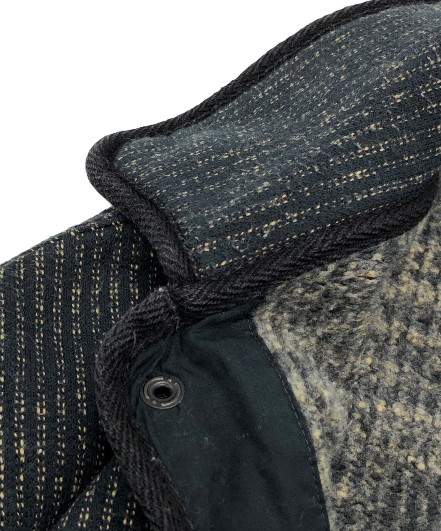 | 状態 | 全体的に毛羽立ちがございます。 襟元にスレや細かな毛玉がございます(写真4・5枚目参照) 袖口にスレやアタリ、細かな毛玉がございます(写真6枚目参照) 裾のパイピング部分にスレやアタリにより白くなっている箇所があり、めくれがございます(写真7枚目参照) 写真8枚目のようにフロントやポケットのパイピング部分にスレやアタリがございます。 こちらの商品は中古品の為、使用に伴います細かなキズ、汚れがございます。店頭にて展示販売を行っている為、記載に無い細かなキズ、汚れが見受けられる場合がございます。 |