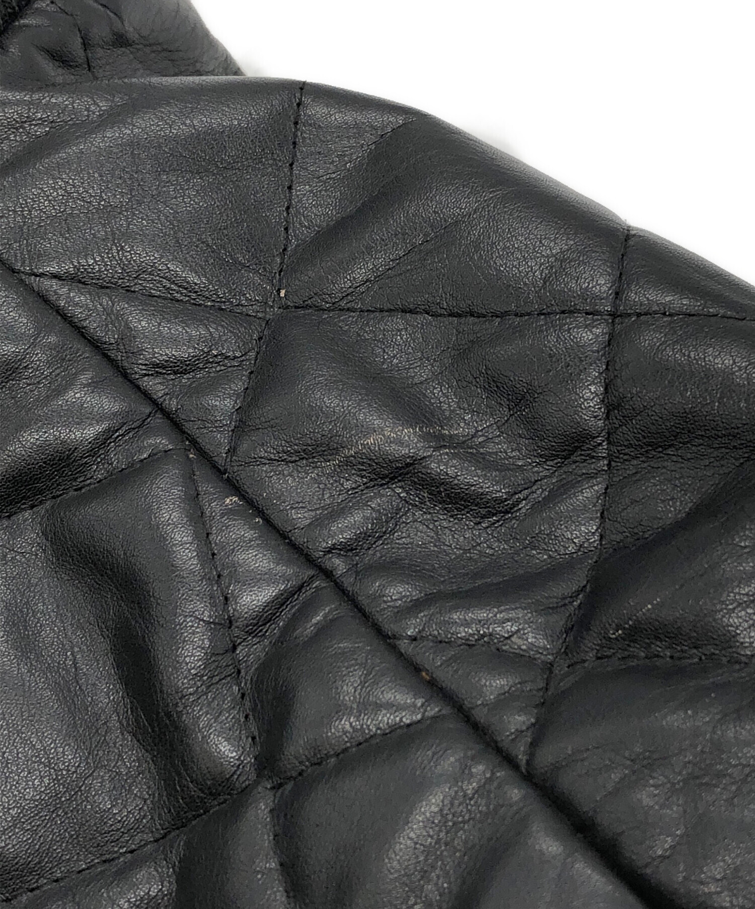 • Schott(ショット)Schott (ショット) レザーキルティングジャケット ブラック サイズ:42の古着・服飾アイテム 毛羽立ち有