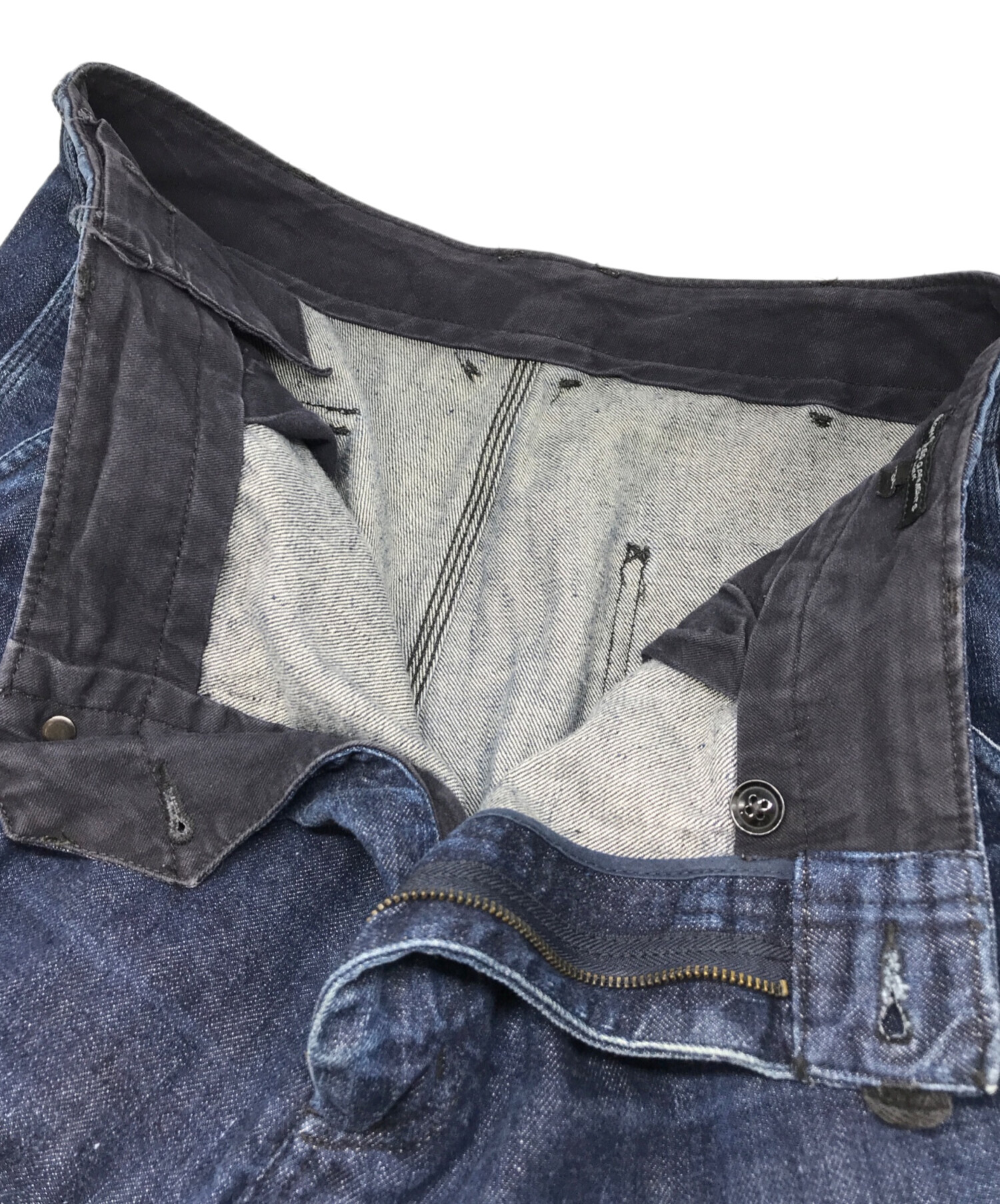| 状態 | 使用感があり、スレやアタリが全体的に目立つアイテムです。 裾部分に汚れやスレ、ダメージがあり、紐が欠損しています(写真6・7枚目参照) 股部分にスレがあり、生地が薄くなっている箇所がございます(写真8・9枚目参照) こちらの商品は中古品の為、使用に伴いますキズ、汚れが各所に見受けられます。店頭にて展示販売を行っている為、記載に無い細かなキズ、汚れが見受けられる場合がございます。 |