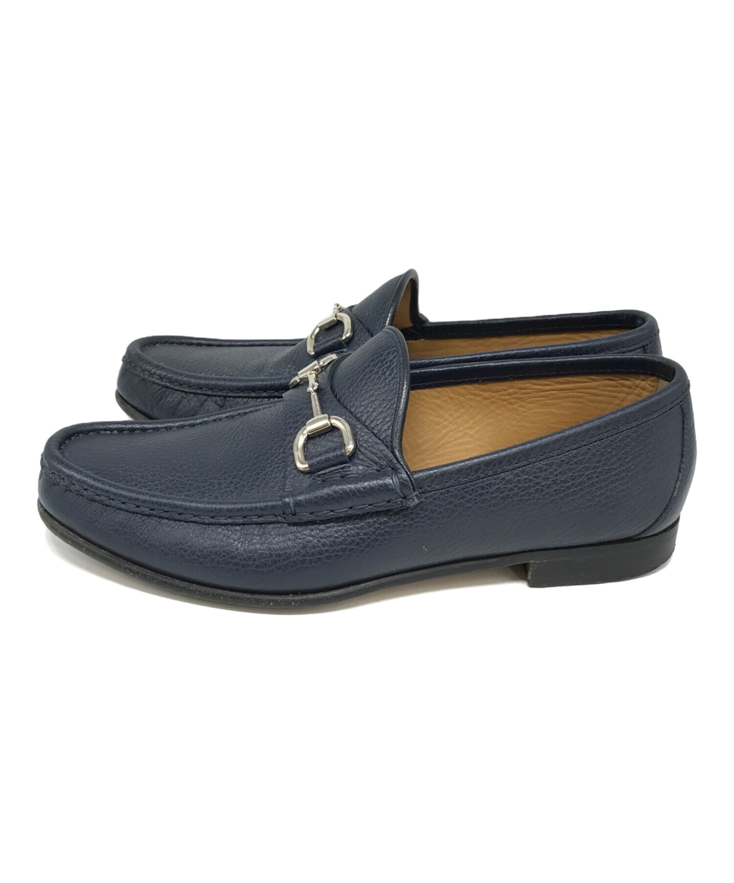 • GUCCI(グッチ)GUCCI (グッチ) ビットローファー ネイビー サイズ:5の古着・服飾アイテム ソールすり減り有