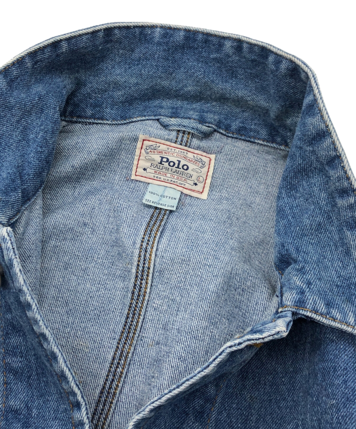 • POLO RALPH LAUREN(ポロ・ラルフローレン)POLO RALPH LAUREN (ポロ・ラルフローレン) デニムジャケット インディゴ サイズ:Lの古着・服飾アイテム 汚れ有
