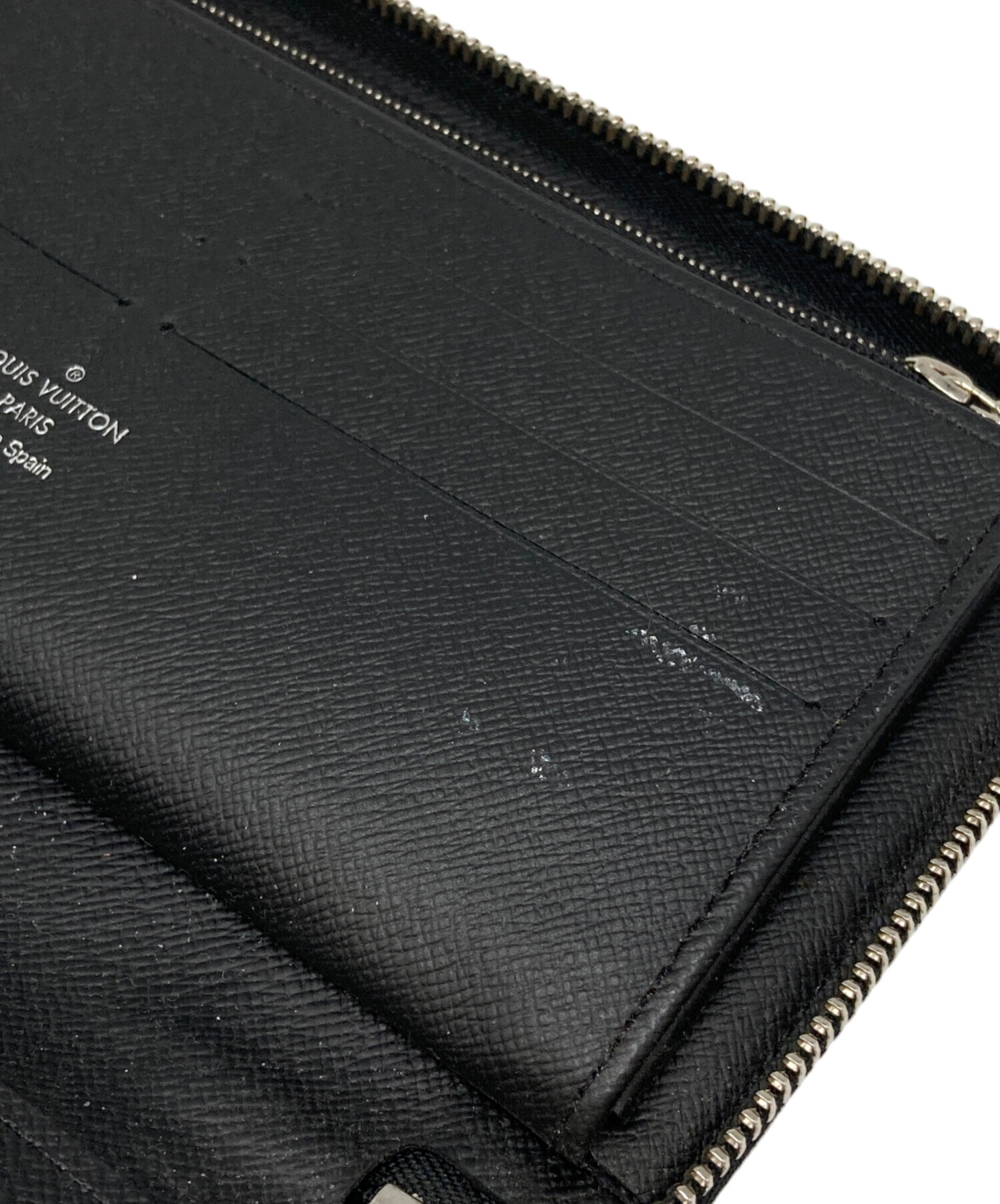 | 状態 | 目立つ角スレが多数ございます(写真4・5枚目参照) 金具部分に細かなキズがございます(写真4枚目参照) フロントワッペン部分にスレがございます(写真6枚目参照) 内側に汚れがございます(写真7・8枚目参照) 「S.I」のイニシャルプリントがございます。 札入れやカード収納部分、小銭入れ部分にヨゴレやスレがございます(写真9・10枚目参照) こちらの商品は中古品の為、使用に伴います細かなキズ、汚れがございます。店頭にて展示販売を行っている為、記載に無い細かなキズ、汚れが見受けられる場合がございます。 |