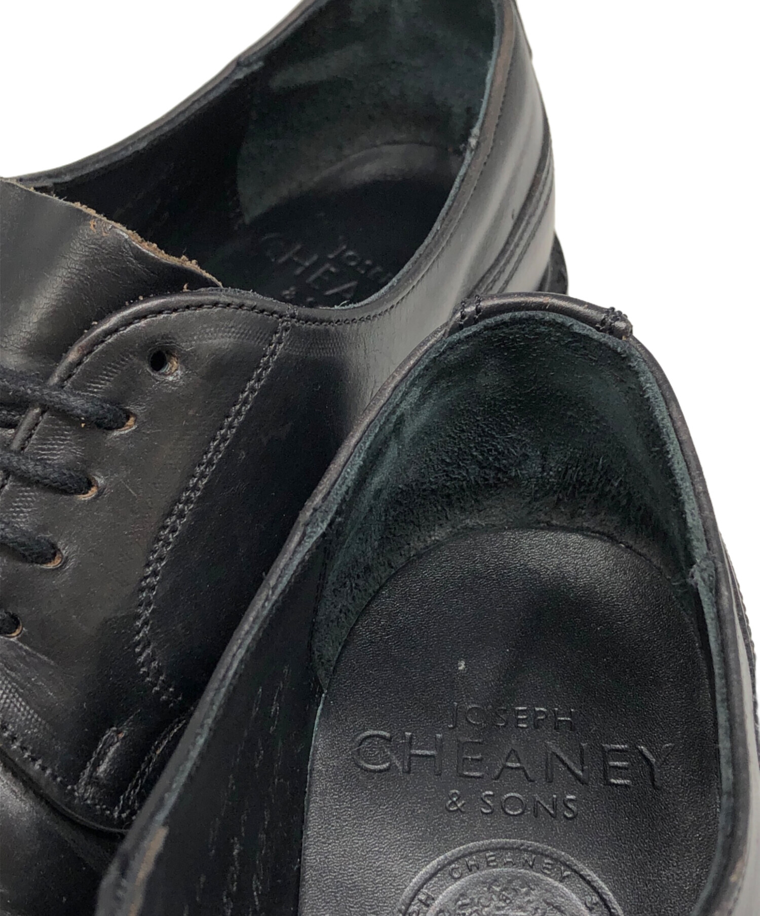 • JOSEPH CHEANEY(ジョセフチーニー)Joseph Cheaney (ジョセフチーニー) CAIRNGORM H ストレートチップ ドレスシューズ ブラック サイズ:5 1/2の古着・服飾アイテム ソールすり減り有