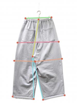 ウエスト周り約73cm ヒップ周り約117cm もも周り約77.5cm 裾周り約66cm 股上(後ろ)約48.5cm 股下(後ろ)約62.5cm