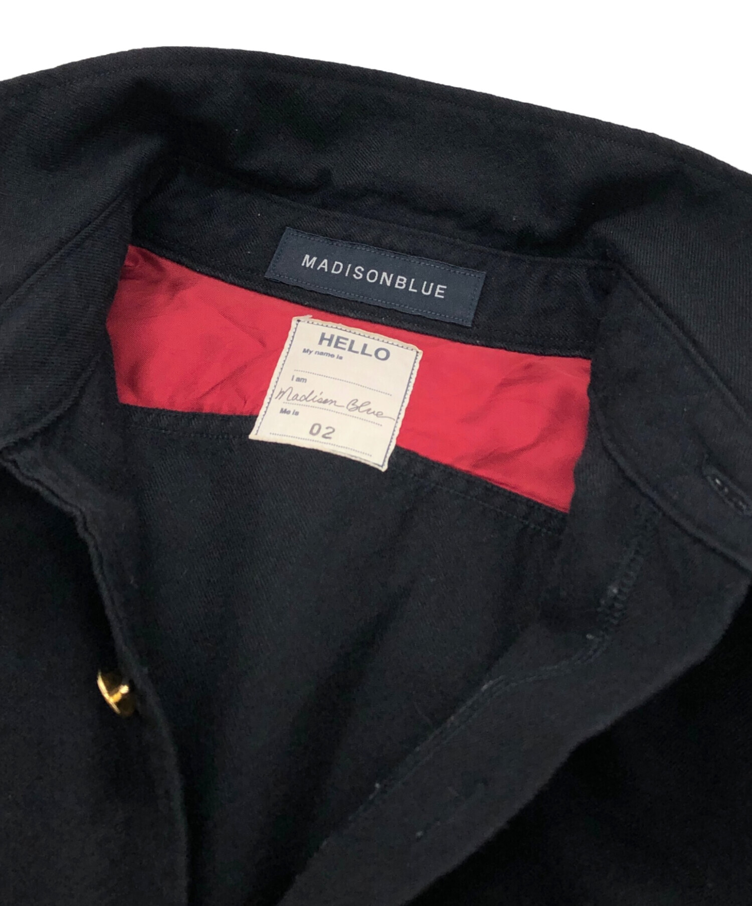 • MADISON BLUE(マディソンブルー)MADISON BLUE (マディソンブルー) 金ボタンシャツ ブラック サイズ:02(M)の古着・服飾アイテム ヨゴレ有