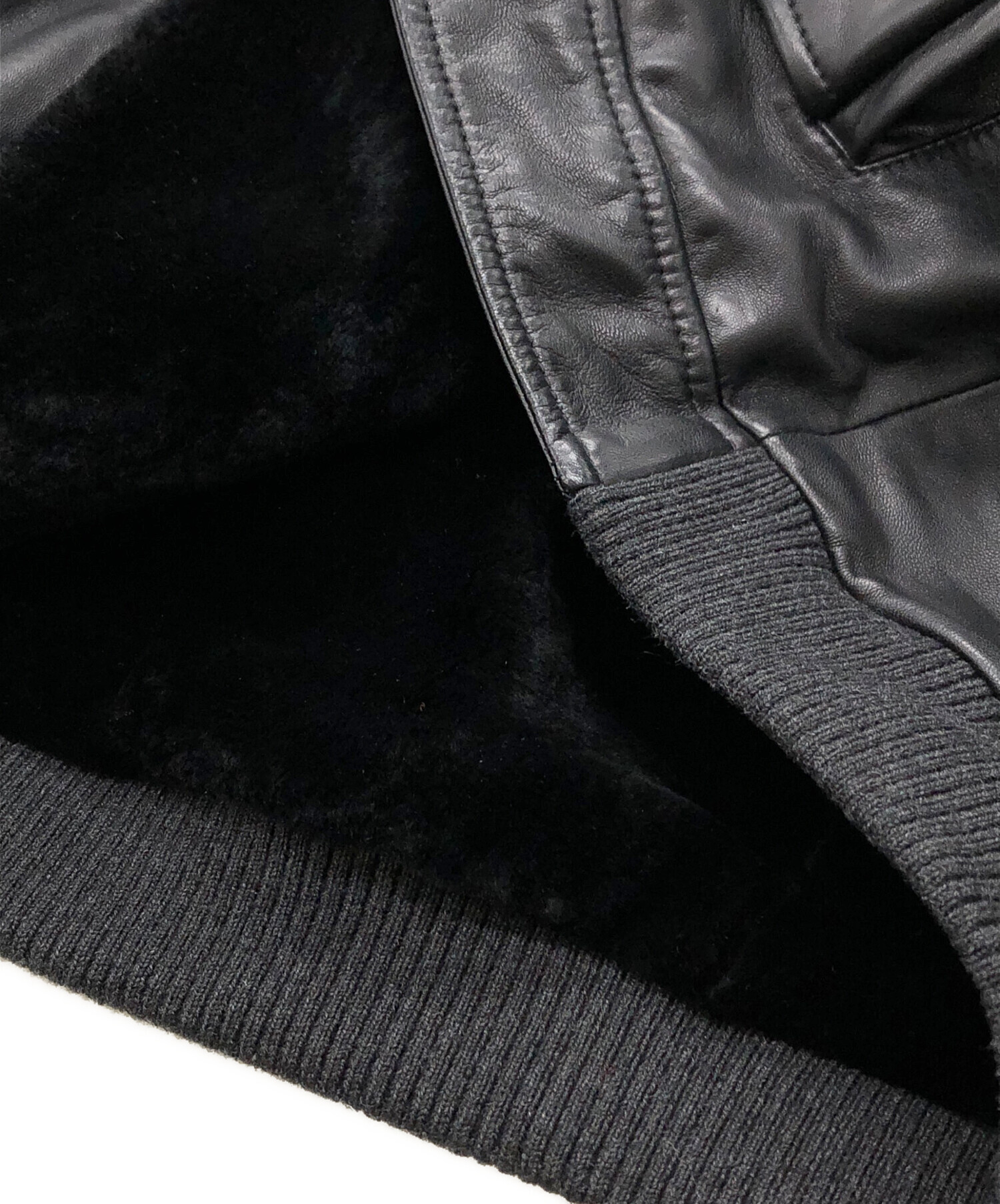 | 素材 | 本体:羊革 袖裏地:レーヨン56%ポリエステル44% 袖中わた:ポリエステル100% 裾部分:毛48%/アクリル47%/ナイロン3%/ポリウレタン2% |