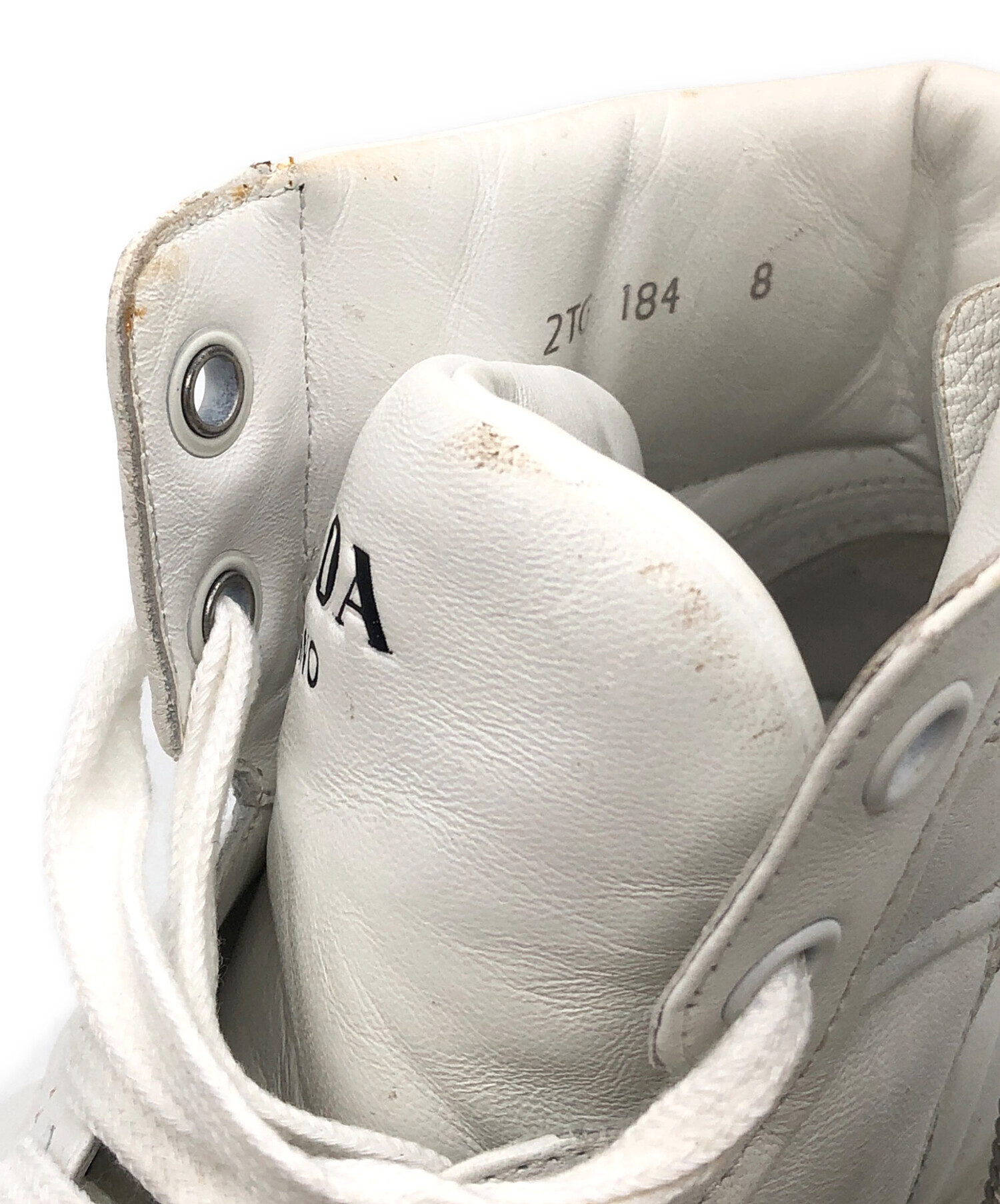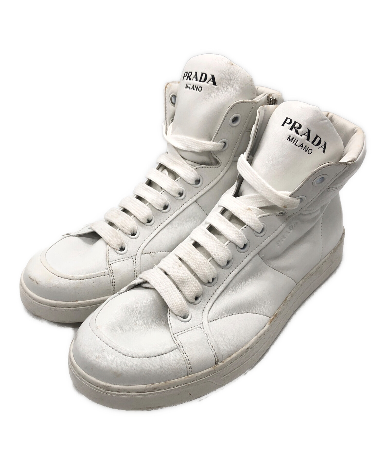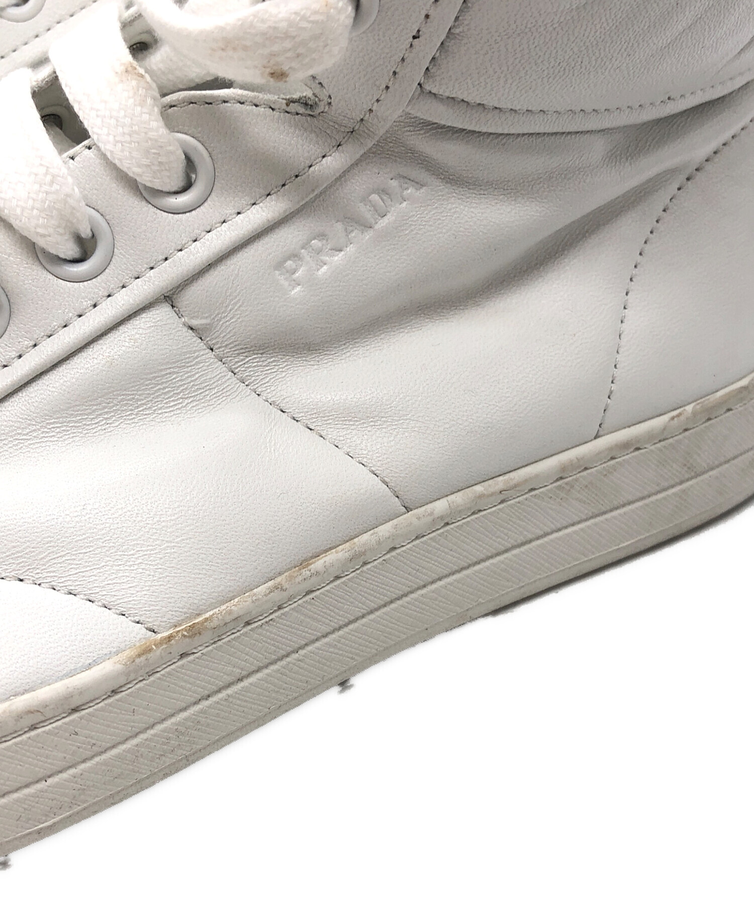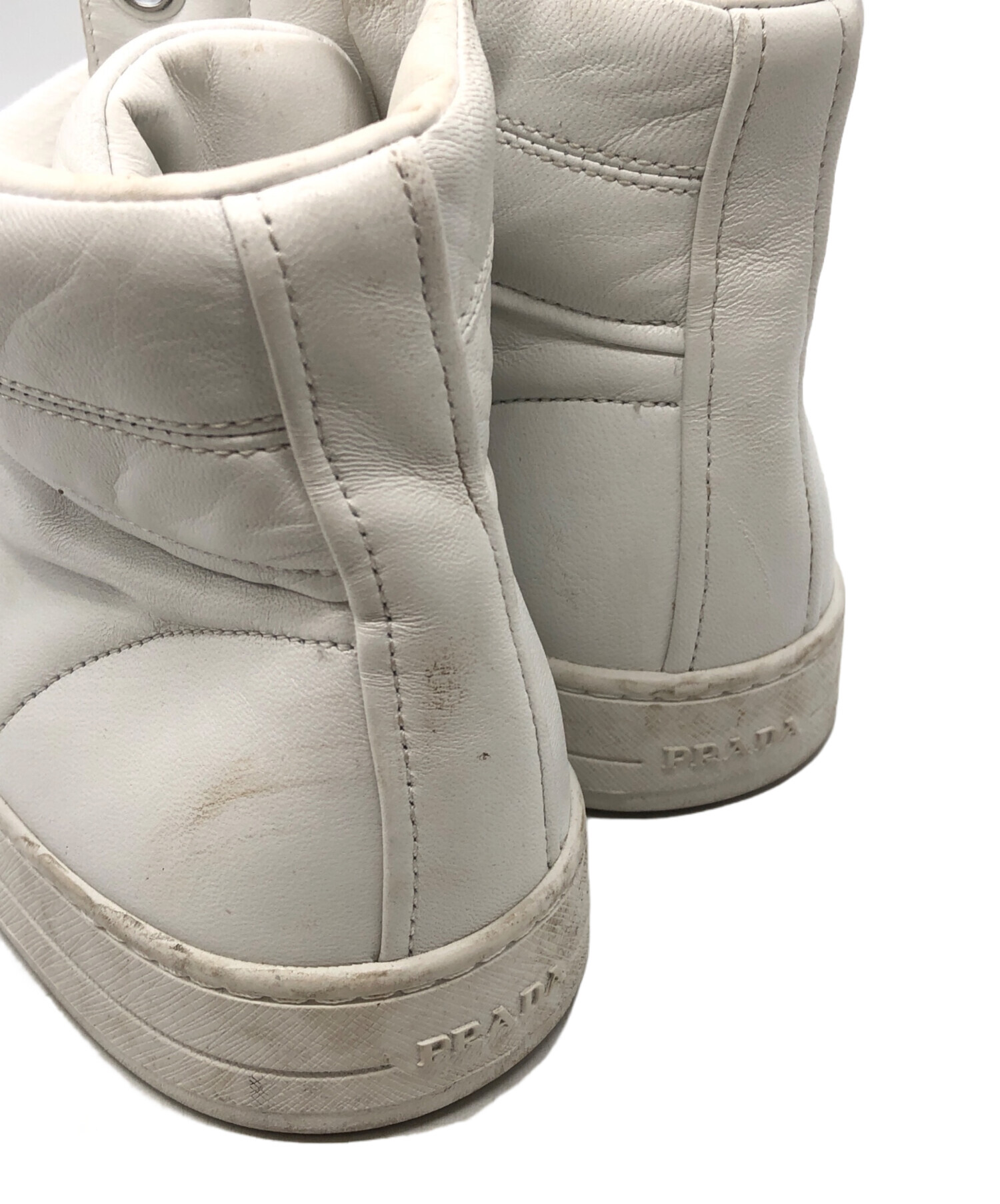 • PRADA(プラダ)PRADA (プラダ) サイドジップハイカットスニーカー ホワイト サイズ:8の古着・服飾アイテム 汚れ・スレ有