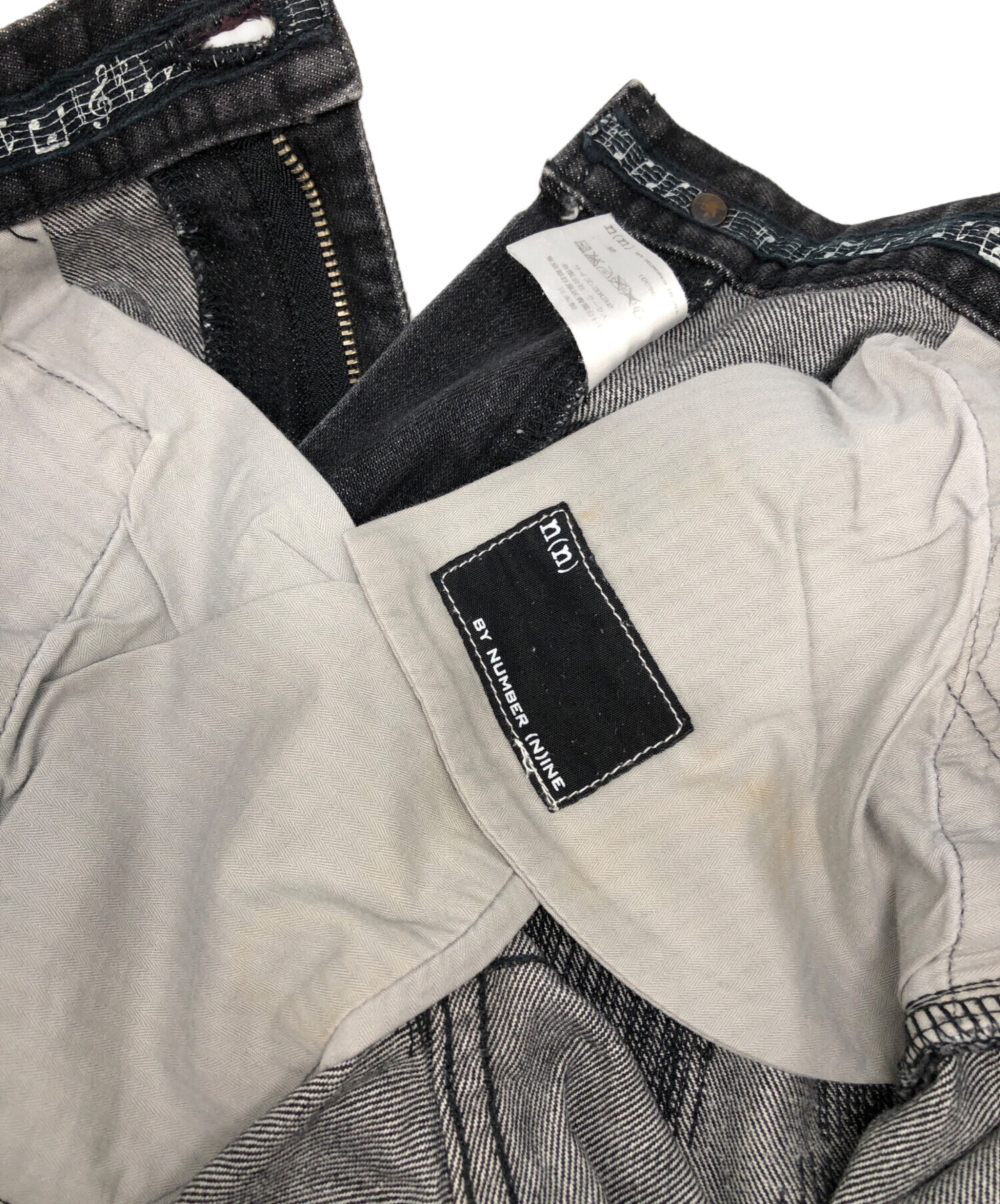 • NUMBER (N)INE(ナンバーナイン)NUMBER (N)INE (ナンバーナイン) ダメージデニムパンツ ブラック サイズ:3×30の古着・服飾アイテム ポケットヨゴレ有
