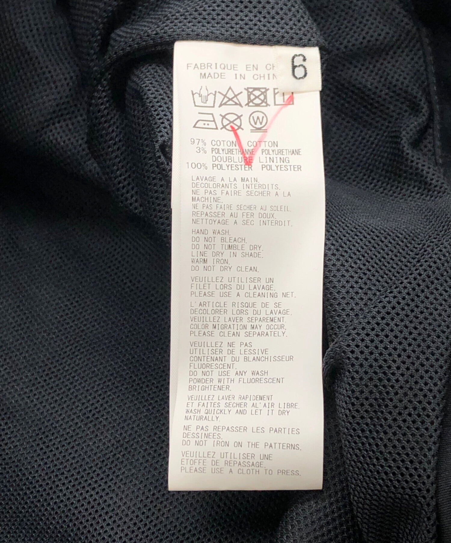 | 素材 | 綿 97% ポリウレタン 3% 裏地: ポリエステル 100% |