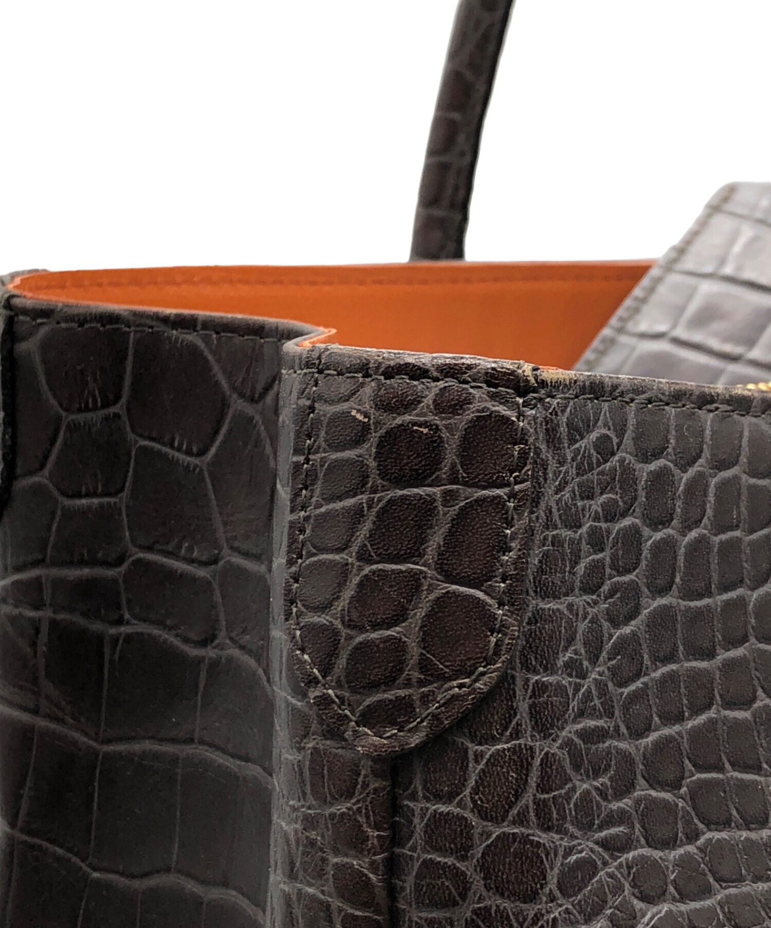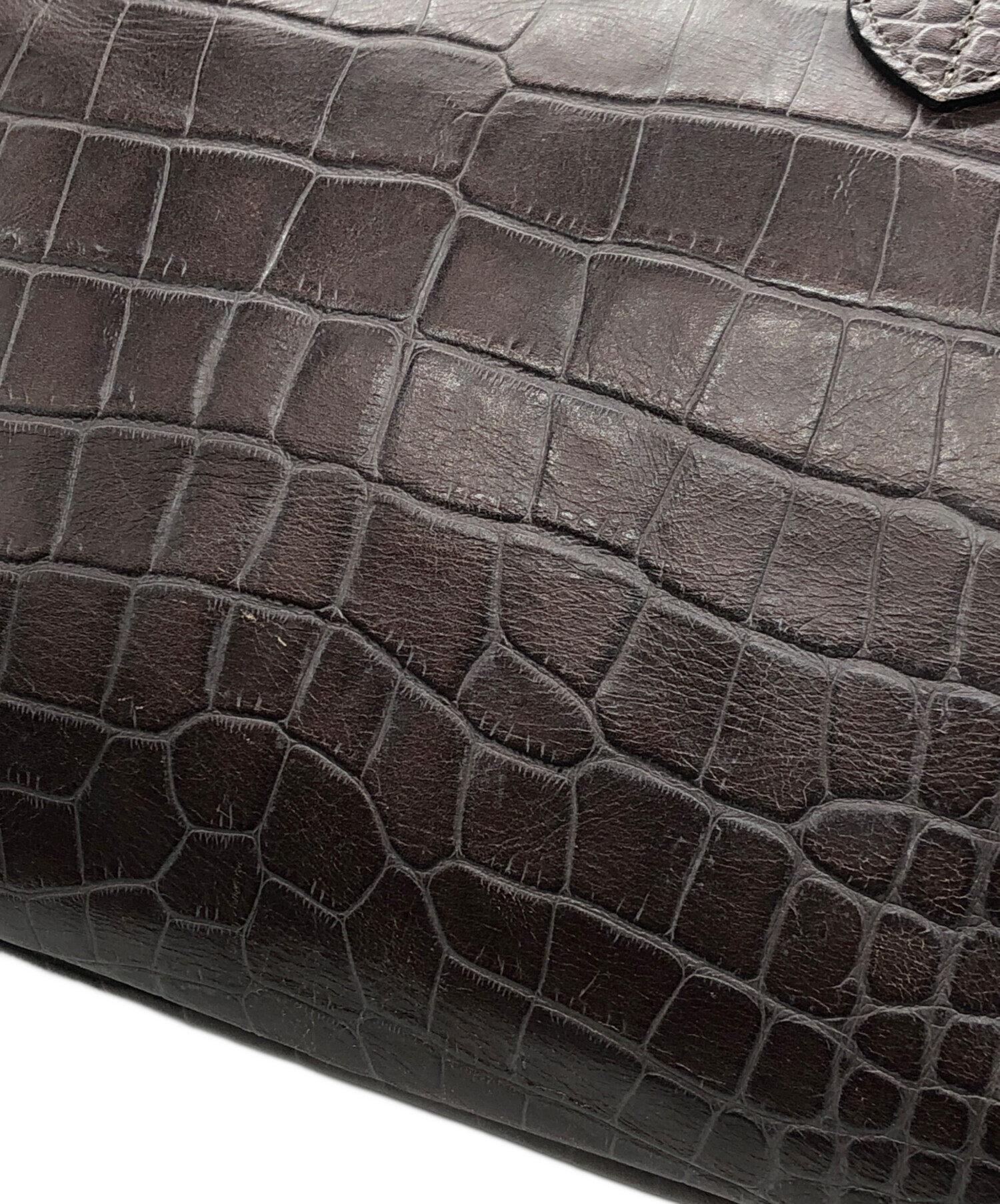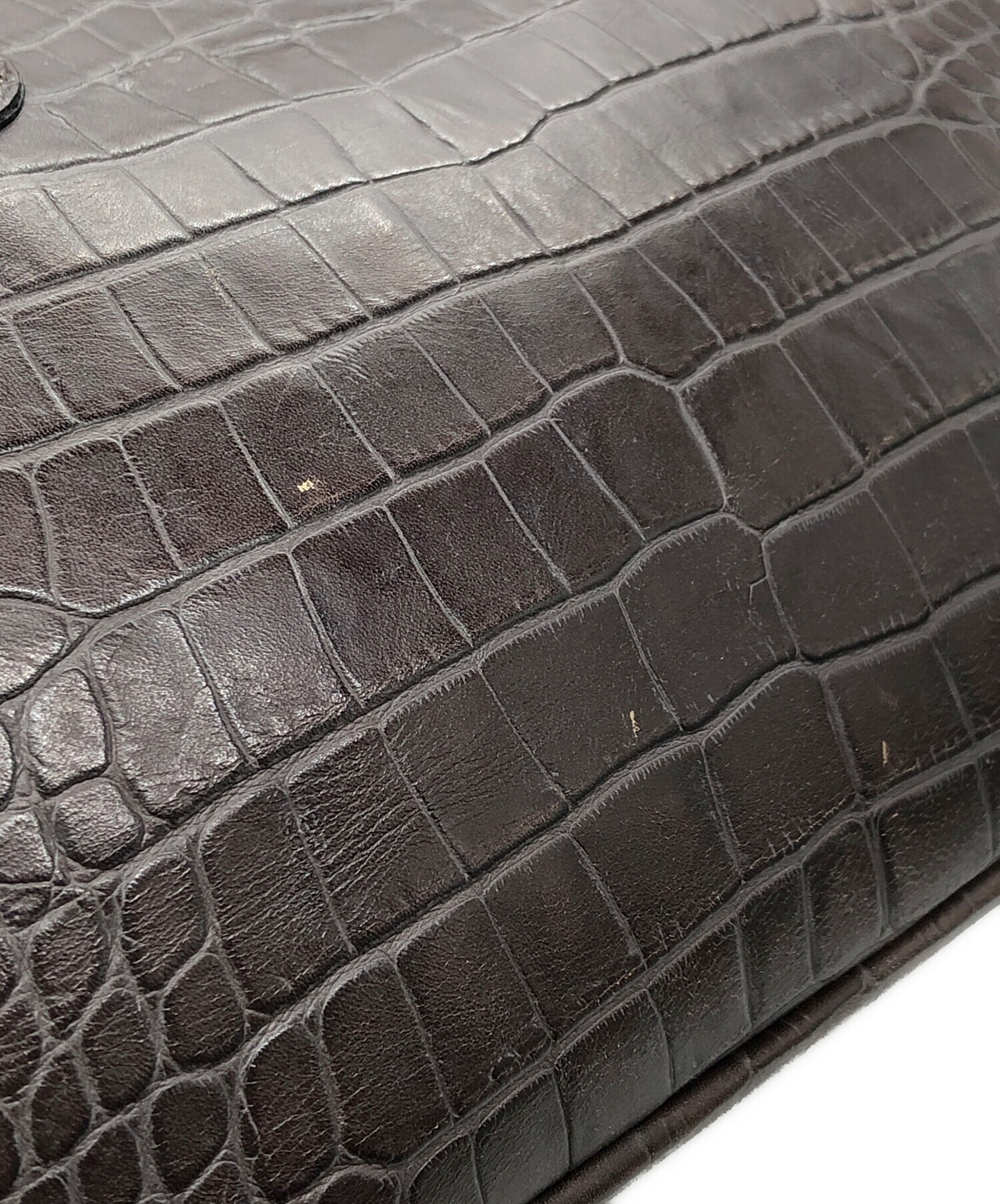 | 状態 | 目立つ角スレがございます(写真4枚目参照) 写真5・6枚目のように全体的に目立つキズやひび割れがございます。 バッグ口にスレやひび割れがございます(写真7・8枚目参照) 持ち手部分にスレやキズがございます(写真9枚目参照) こちらの商品は中古品の為、使用に伴います細かなキズ、汚れがございます。店頭にて展示販売を行っている為、記載に無い細かなキズ、汚れが見受けられる場合がございます。 |