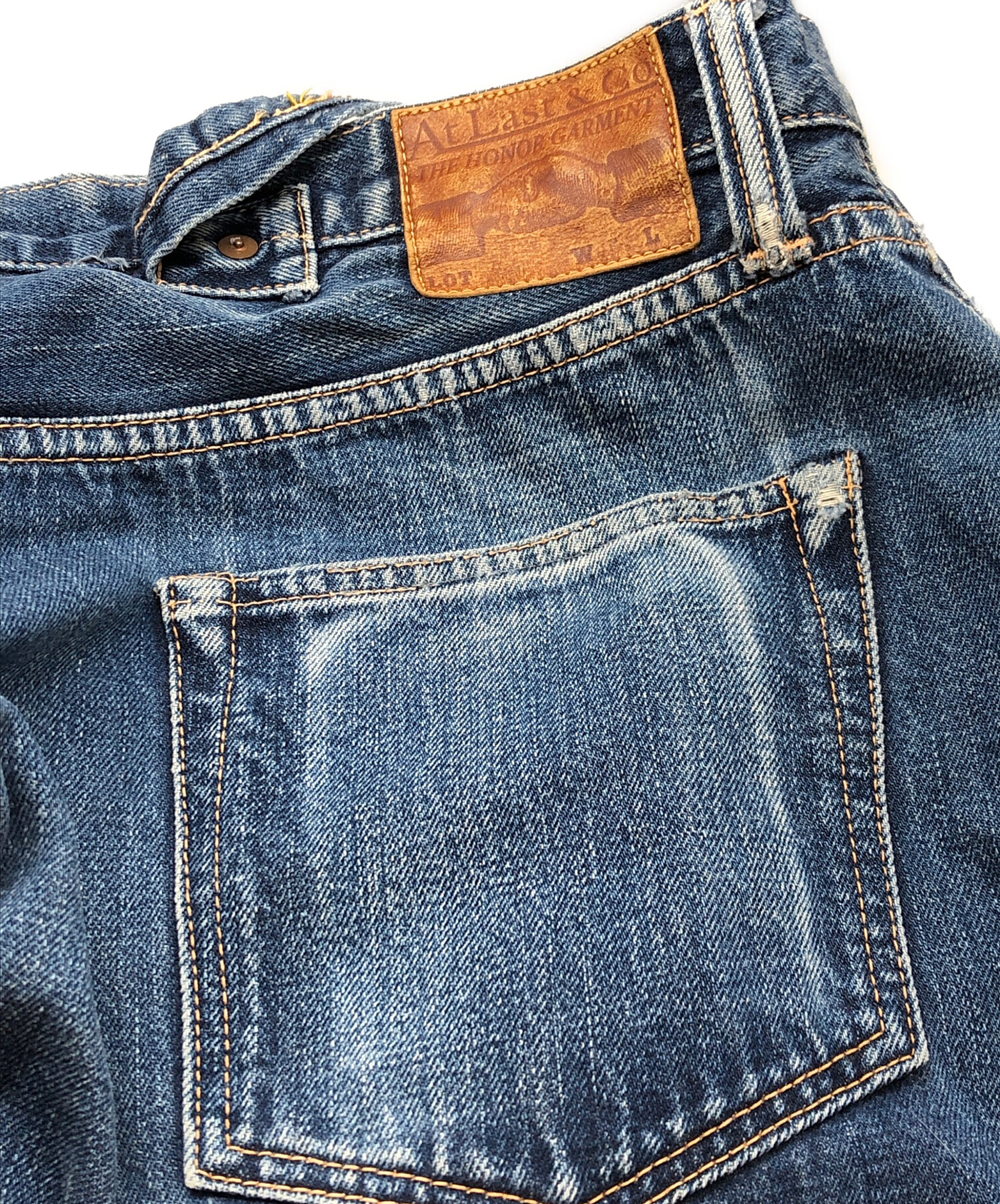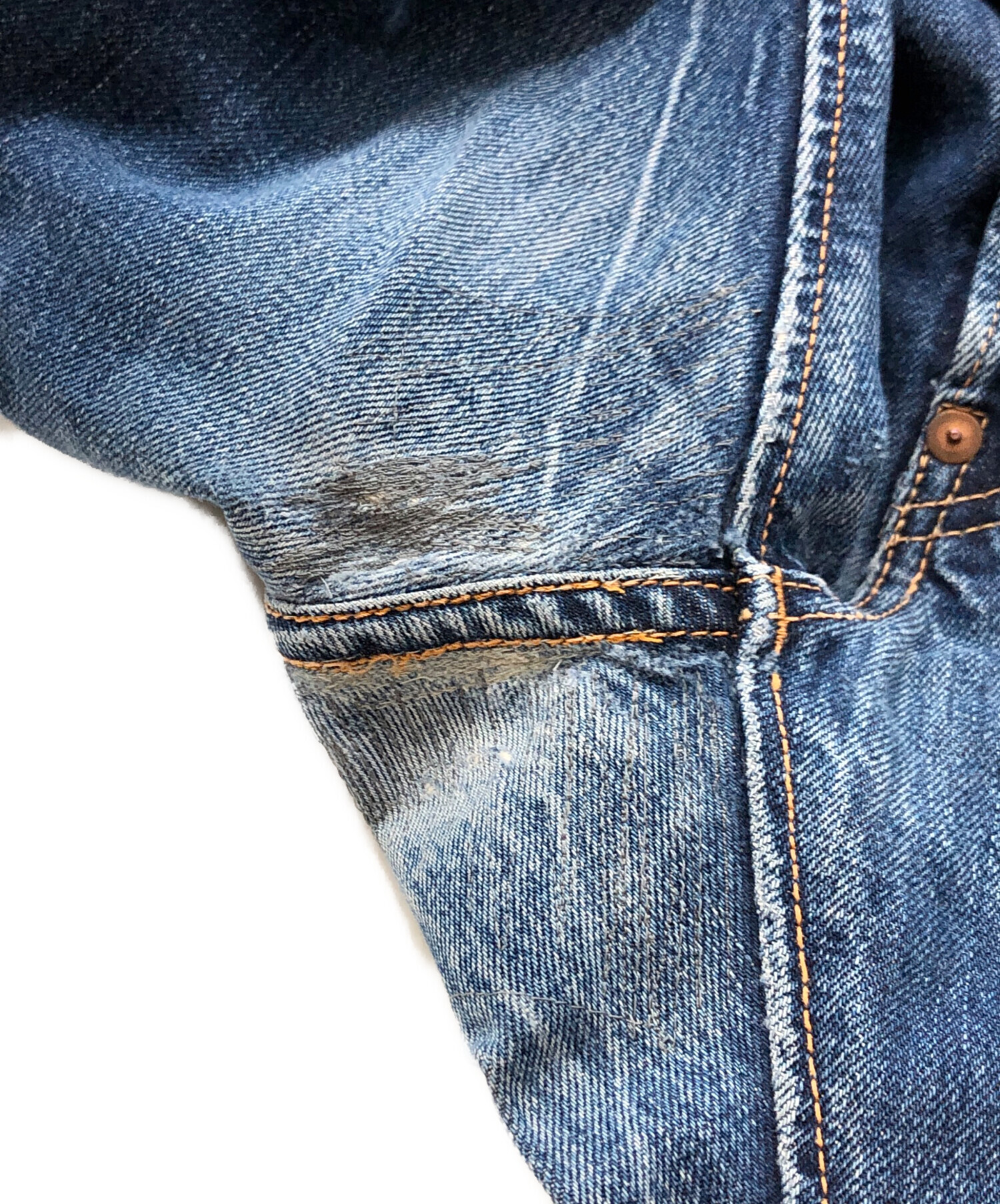 | 状態 | 印字消えがあり、サイズや品質表示等不明です。 ウエストやフロントにスレやアタリがございます(写真3・4枚目参照) 股部分にリぺア跡がございます(写真5・6枚目参照) バックポケット、ベルトループ部分にスレやアタリ、ダメージがございます(写真7枚目参照) 写真8枚目のように細かなキズがございます。 裾に汚れやスレ、ダメージがございます(写真9・10枚目参照) こちらの商品は中古品の為、使用に伴います細かなキズ、汚れがございます。店頭にて展示販売を行っている為、記載に無い細かなキズ、汚れが見受けられる場合がございます。 |