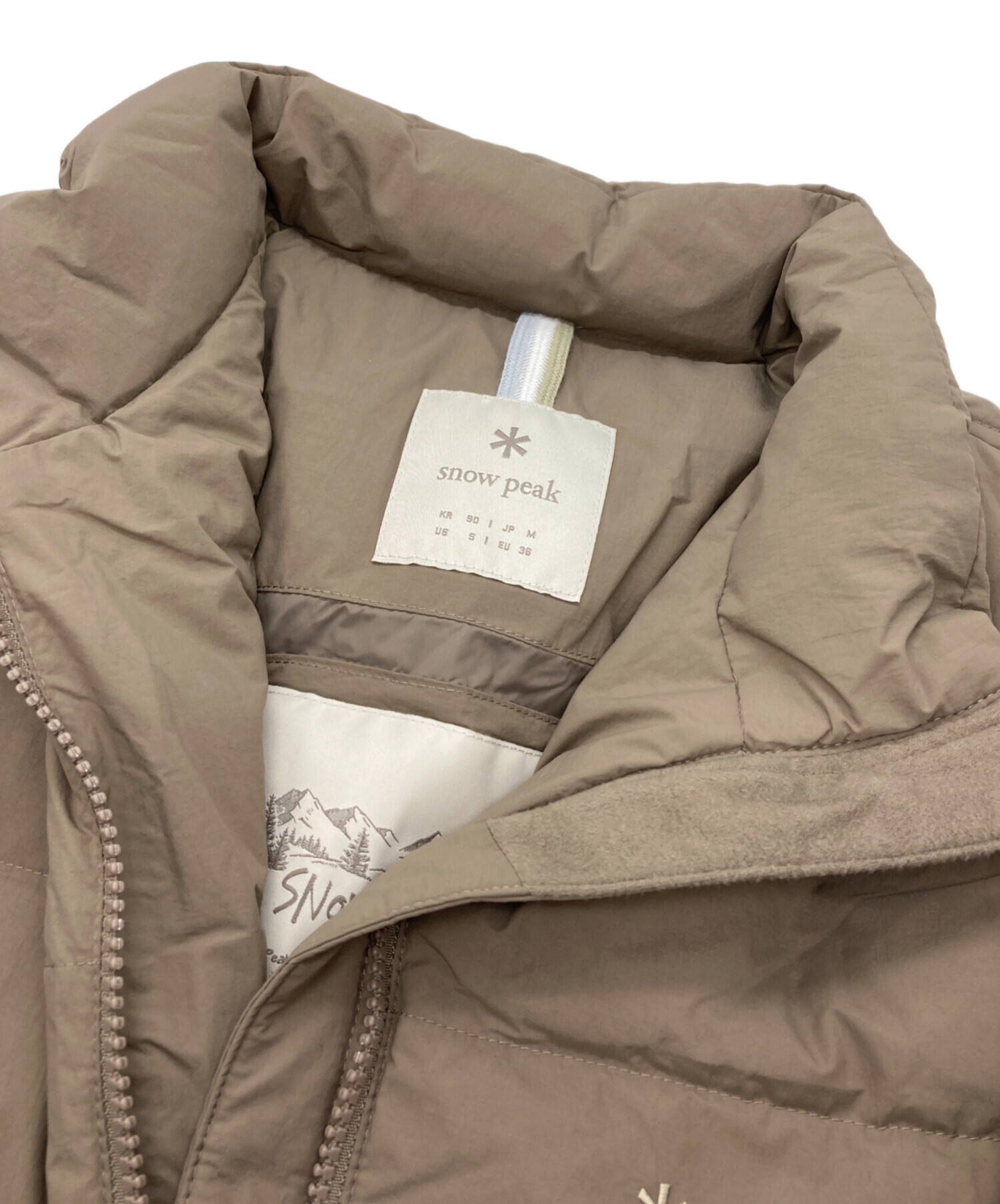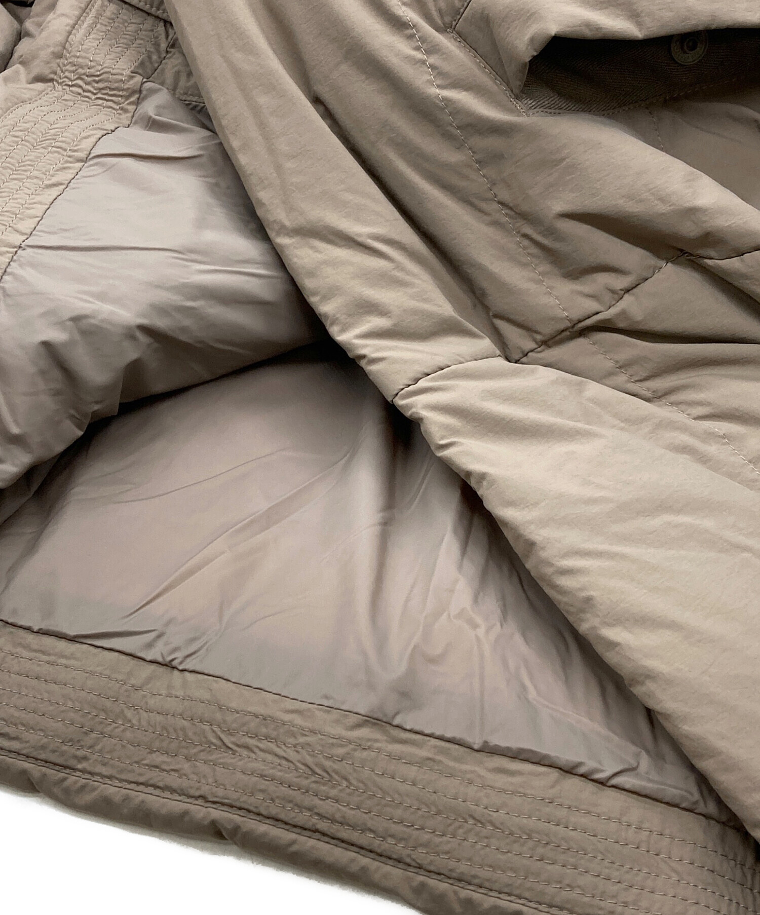 | 素材 | 表地:ナイロン100% 裏地:ナイロン100% 中わた:ダウン80%/フェザー20% 裏打ち基布:ポリエステル100% ポケット:ポリエステル100% |