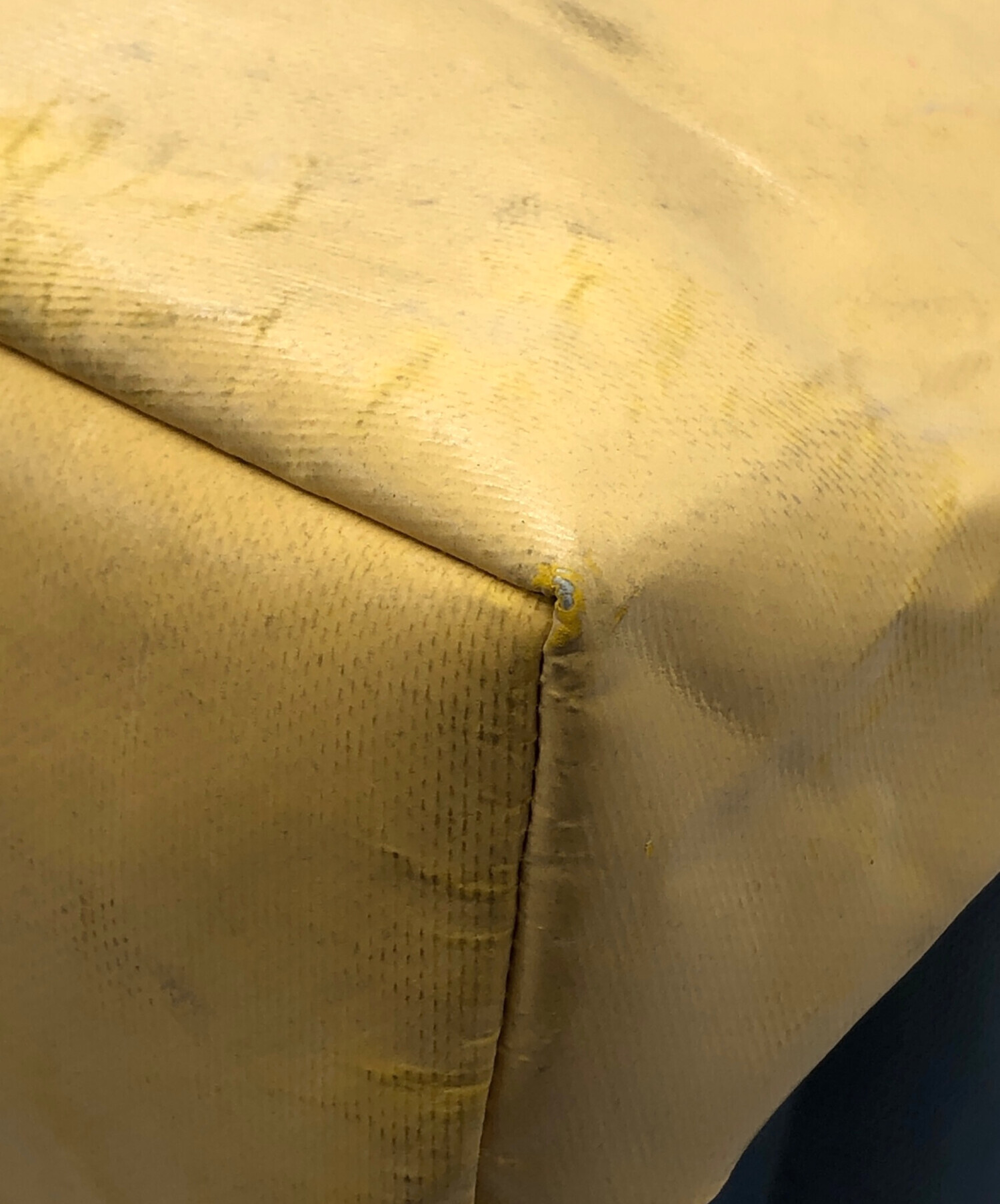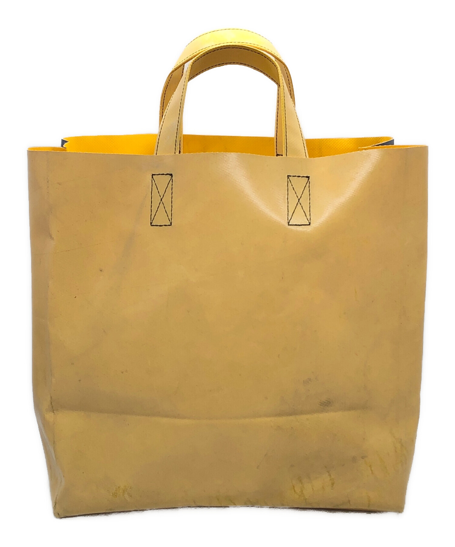 | 状態 | リサイクル素材を使用し作成されているアイテムのため、予め汚れやスレ、キズがございます。 角スレがございます(写真4・5・6枚目参照) 持ち手部分に糸の飛び出しがございます(写真7枚目参照) こちらの商品は中古品の為、使用に伴います細かなキズ、汚れがございます。店頭にて展示販売を行っている為、記載に無い細かなキズ、汚れが見受けられる場合がございます。 |