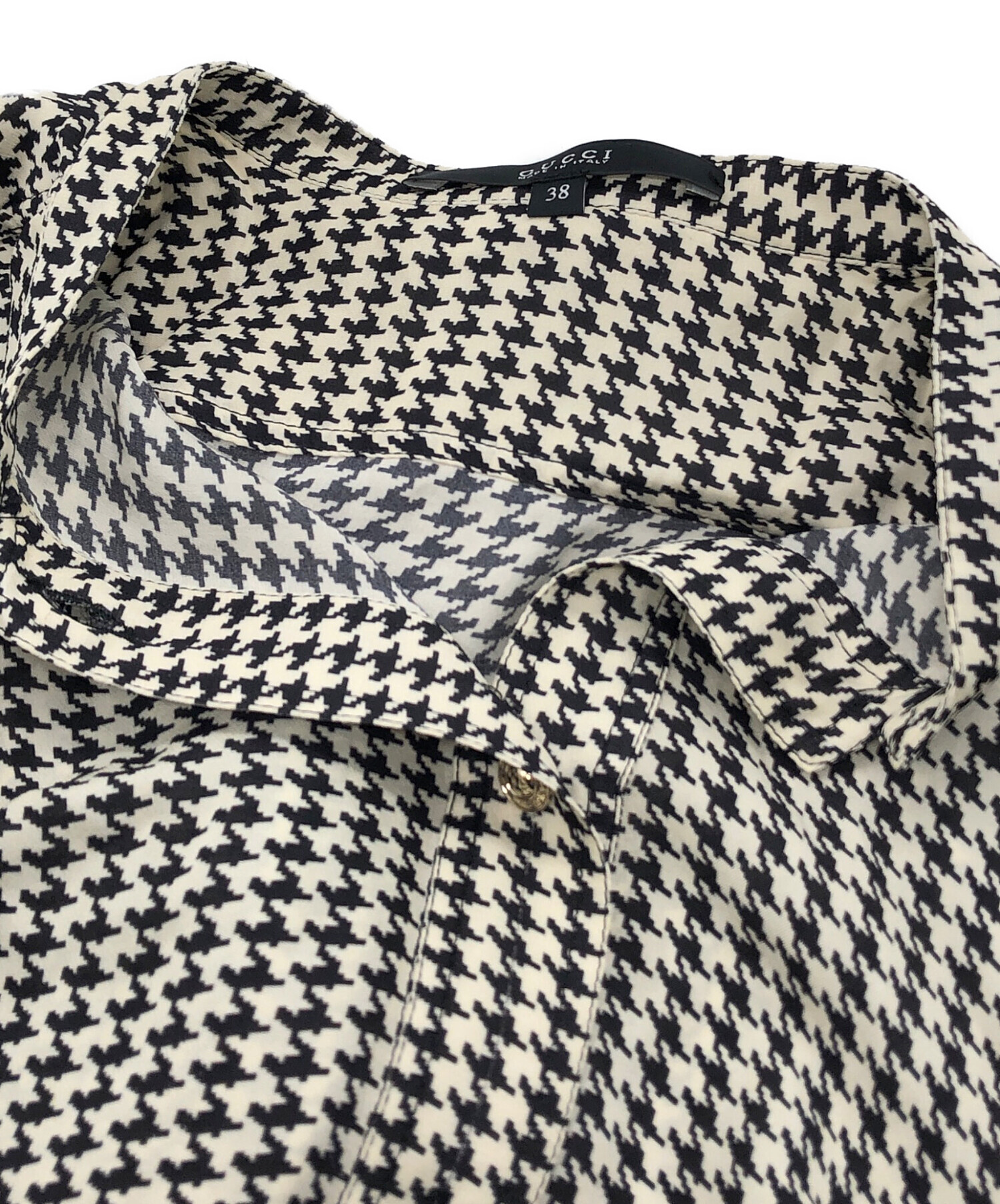 • GUCCI(グッチ)GUCCI (グッチ) 総柄シルクワンピース ホワイト サイズ:38の古着・服飾アイテム 袖口汚れ有