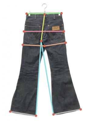 ウエスト周り約75cm ヒップ周り約97cm もも周り約59.5cm 裾周り約63cm 股上(後ろ)約31.5cm 股下(後ろ)約77.5cm