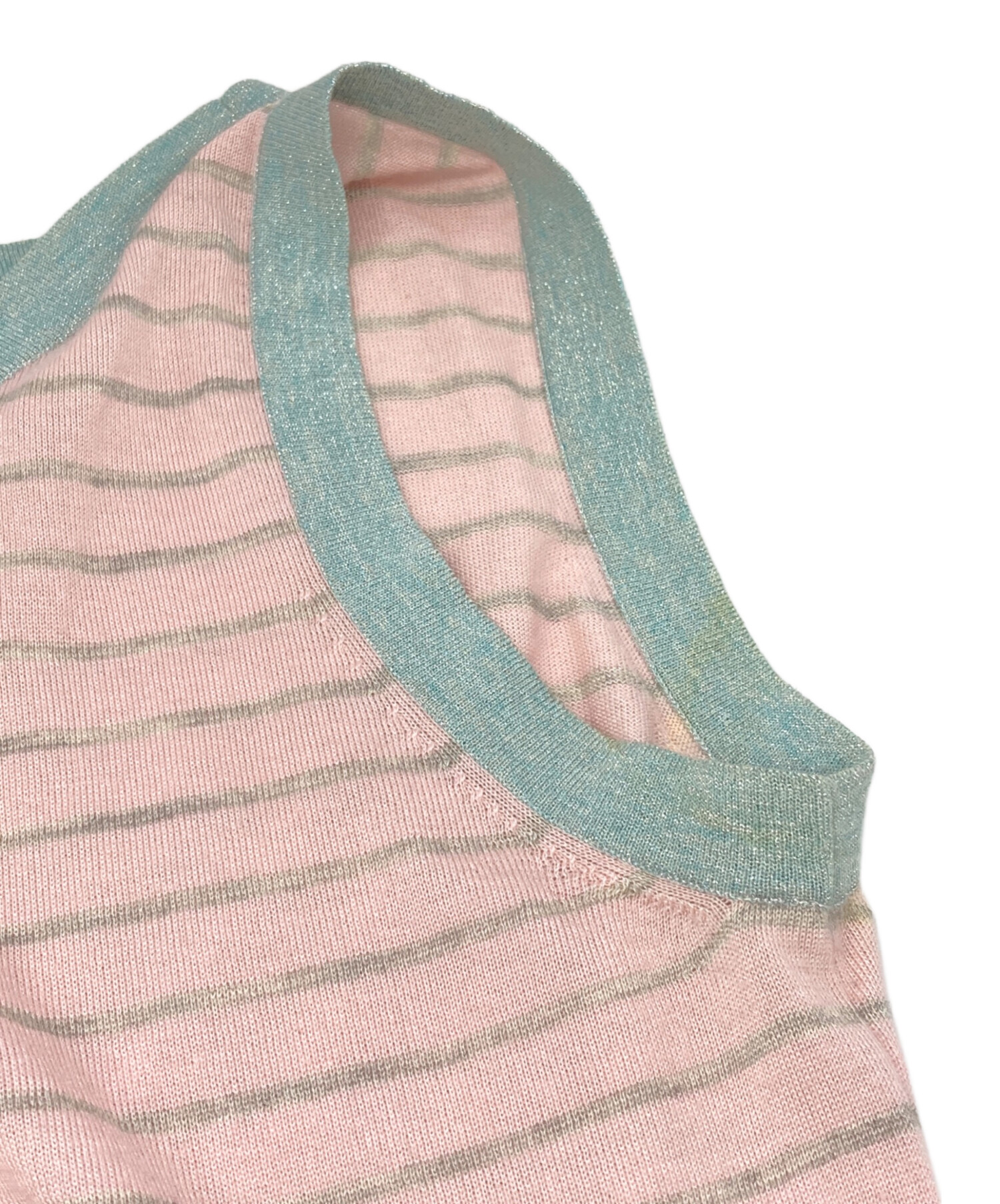 ボーダーノースリーブシルクニット