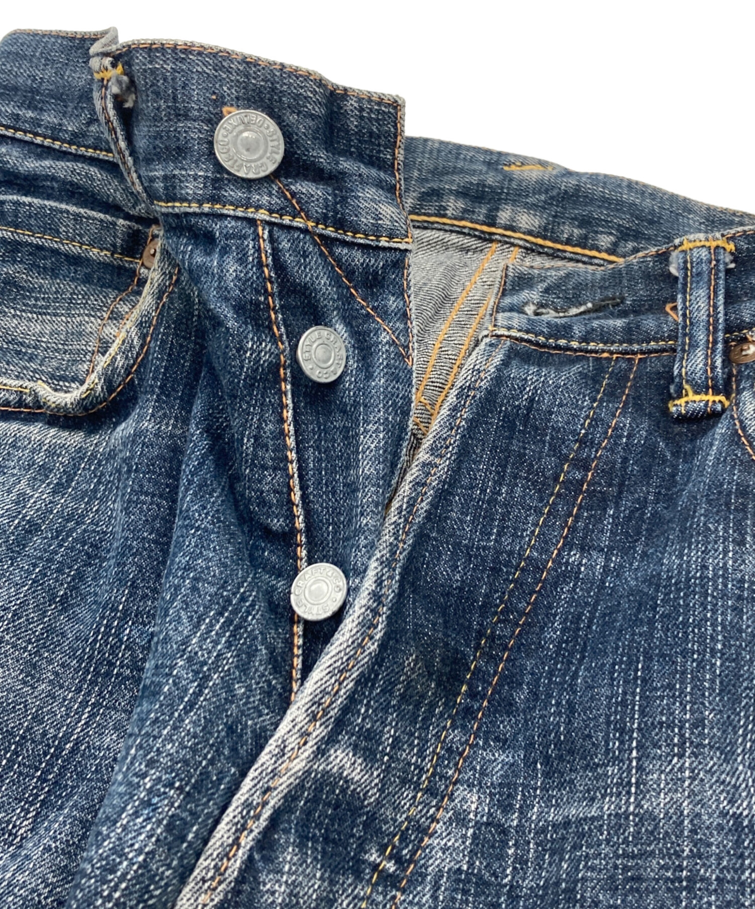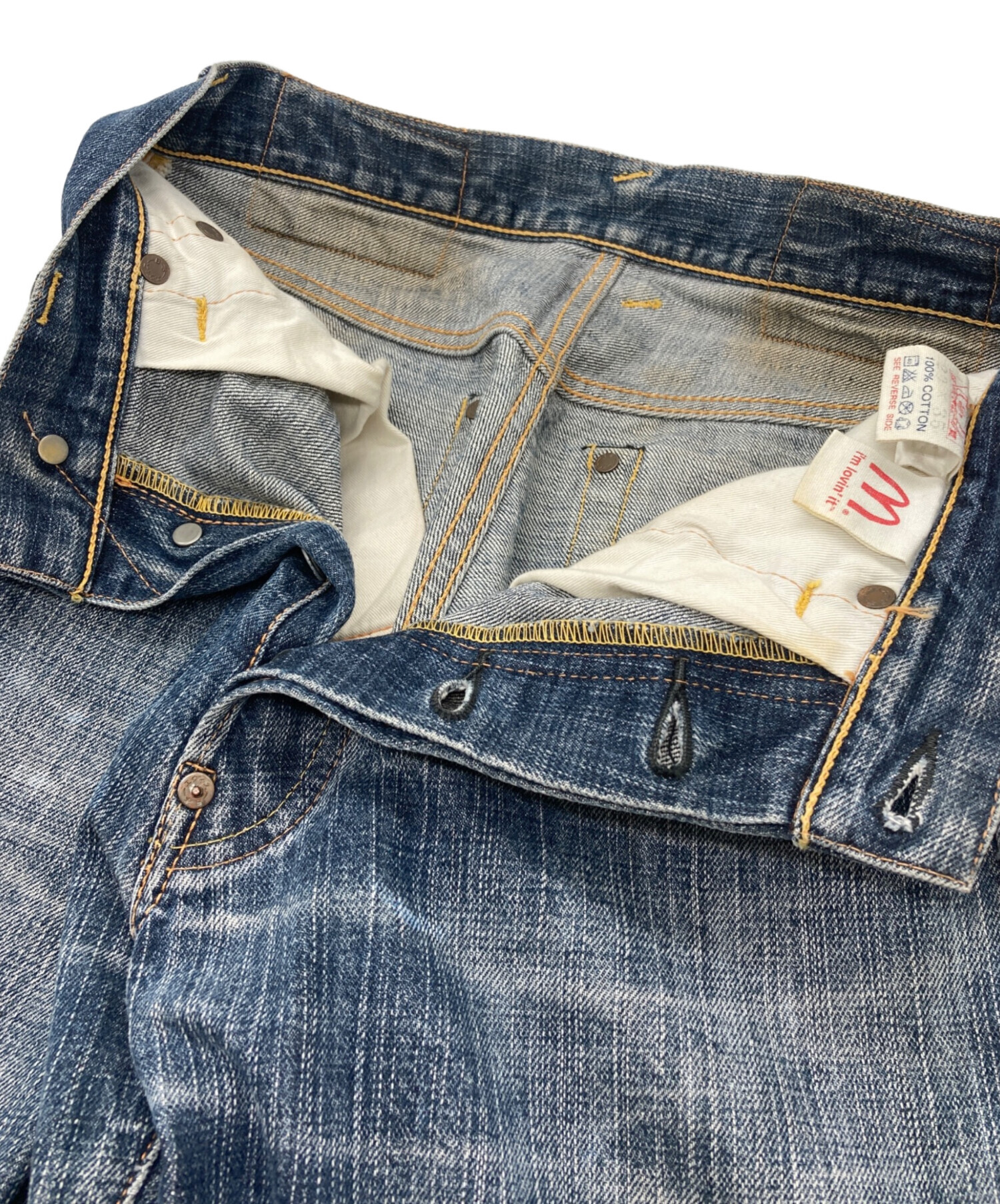 | 状態 | ウエストやフロントにスレがあり、ウエスト内側に汚れがございます(写真3・4・5・6枚目参照) 裾に汚れやスレがございます(写真7枚目参照) 写真8~10枚目のように全体的に汚れや色落ちがございます。 バックポケット部分にスレや破れ箇所がございます(写真11枚目参照) こちらの商品は中古品の為、使用に伴います細かなキズ、汚れがございます。店頭にて展示販売を行っている為、記載に無い細かなキズ、汚れが見受けられる場合がございます。 |