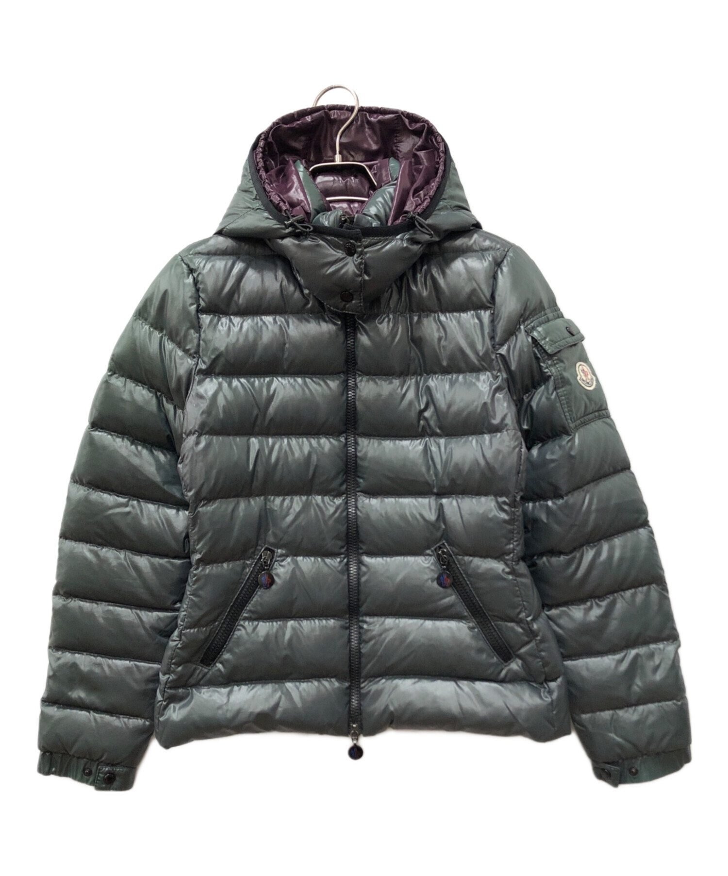 • MONCLER(モンクレール)MONCLER (モンクレール) BADYダウンジャケット グリーン×パープルの古着・服飾アイテム フード変色有